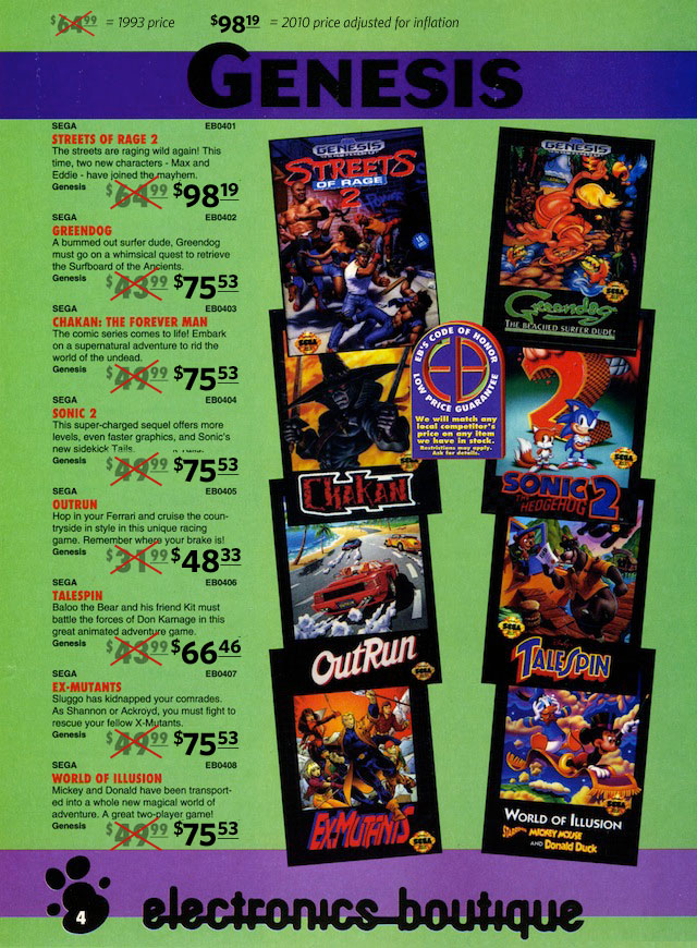 Starcraft II costă 60 de euro. Adică 230 de lei. Pentru alte jocuri de PC, preţurile sunt ceva mai mici, dar nu semnificativ, iar de consolă nici nu mai vorbim. Şi totuşi, arstehnica.com ne demonstrează că lucrurile sunt fix pe dos: dacă aducem la zi preţurile din anii ’90, ne urcăm pe pereţi şi ne dăm seama că nu e chiar aşa de rău în 2010. Acum 20 de ani, ce-i drept, jocurile erau mult mai puţine, nu aveam o invazie de zeci de titluri cel puţin de două ori pe an (iarna şi primăvara). Dar să combinăm numerele mici cu limitările acute ale tehnologiei de acum două decenii şi ne dăm seama că un joc de 40-50 de dolari atunci ar costa cam 80 de dolari pe rafturile actuale.