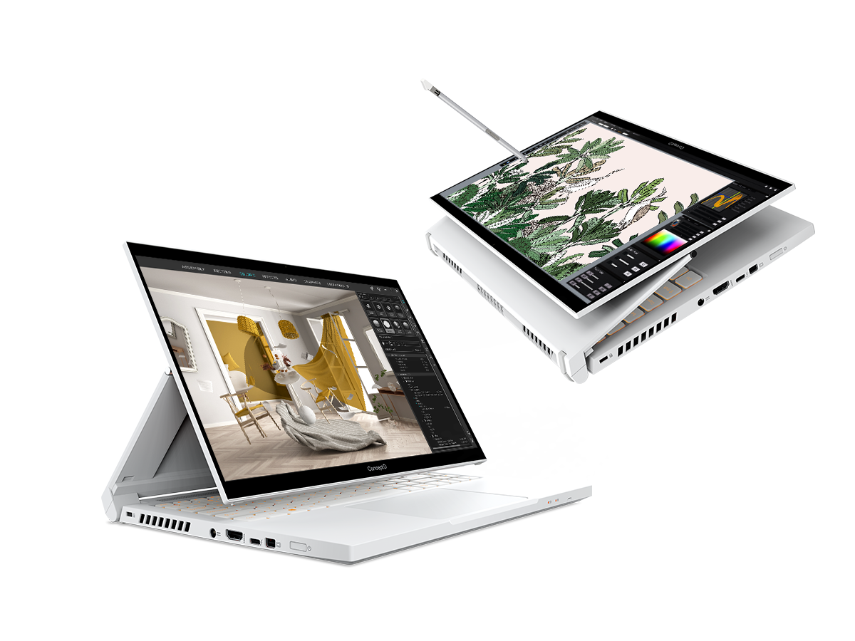 Laptopul performant ConceptD 3 are un design atemporal și permite munca și creativitatea mobilă. Ideal pentru cei care preferă dispozitivele tradiționale și cu 20 de ore durată de viață a bateriei, acesta oferă creatorilor flexibilitatea de a edita și de a-și prezenta lucrările oriunde s-ar afla. Alimentat de NVIDIA Quadro T1000 (ConceptD 3 Pro) sau GeForce GTX 1650Ti și de noile procesoare Intel Core H din generația 10, dispozitivul este conceput special pentru a gestiona toate lucrările 2D sau 3D cu acuratețe vitală a culorilor pe un model de 14 sau 15,6 inci FHD validat PANTONE.