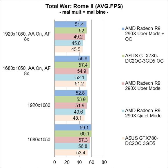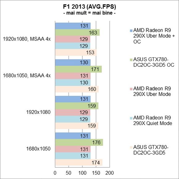 Mda.si urmeaza nvidia sa lanseze 780ti ,care de asemenea va avea un spor de performanta insesizabil ,reflectat decat de testele sintetice,care va avea un pret abordabil de 3-4000 lei ,dupa care urmeaza amd sa lanseze inca o placa stoarsa si aia de ultimele puteri si asa vom bate pasul pe loc si vom plati niste preturi astronomice pe NIMIC.AS avea o mica curiozitate-poate cineva sa sesizeze diferenta de frame-uri incazul in care sunt peste 60fps si dispunem de un monitor clasic cu ghilimelele de rigoare ,care are 60hz?sau poate ar trebui sa cumpar un monitor pe 120hz cupanou tn,care are niste culori spalacite si sa ma bucur de un super mario care ruleza cu 120fps ,caci un crysis 3 de exemplu,cu setarile la max nu am nici o sansa,indiferent de placa alaeasa.De curiozitate Radu:ce placa ti-ai alege in acest moment daca ai vrea sa iti faci un grade la pc?