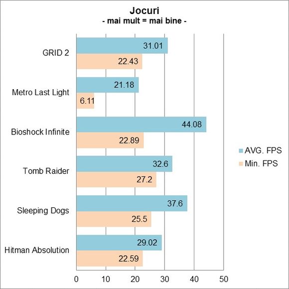 AMD "Richland" A10: 6800K şi 6700 Posted byadmin June 5, 2013 Leave a comment on AMD "Richland" A10: 6800K şi 6700 Prev8 of 9NextUse your ← → (arrow) keys to browse Setări folosite GRID 2 Metro: Last Light Bioshock Infinite Tomb Raider Sleeping Dogs Hitman Absolution Rezultate obţinute Prev8 of 9NextUse your ← → (arrow) keys to browse