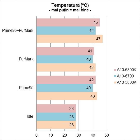 La final, nu ar fi prea multe de adăugat referitor la AMD Richland. Produsele se comportă aşa cum anticipam, oferind un uşor spor de performanţă faţă de generaţia anterioară, ce permite rularea unor jocuri, chiar şi noi, în condiţii satisfăcătoare. Interesant de văzut va fi cum vor plasa AMD A10-6800K şi A10-6700, dar înclin să cred că vor respecta tendinţa de până acum şi vom avea astfel APU-uri echilibrate, cu un raport performanţă/preţ corect.