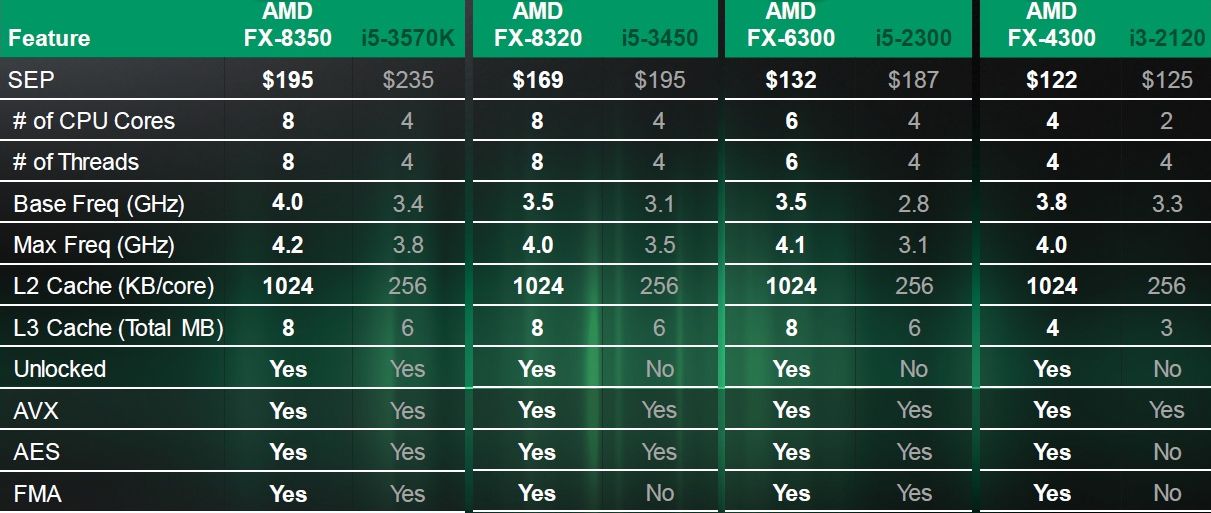 Pe lângă reducerea preţurilor de achiziţie considerabil faţă de preţurile anunţate pentru Bulldozer cu un an în urmă, AMD ne promit şi optimizări semnificative, precum utilizarea unei memorii cache mai rapide, ce au rolul de a aduce un spor semnificativ de performanţă faţă de generaţia precedentă. Consumul de energie pare să nu fi suferit însă schimbări, FX-8350 având un TDP maxim specificat tot de 125W, la fel ca vechiul FX-8150. Diferenţa este că noul FX-8350 este livrat cu o frecvenţă de 4GHz şi poate funcţiona, în funcţie de nivelul de solicitare, chiar şi la 4.2GHz mulţumită tehnologiei AMD Turbo Core.