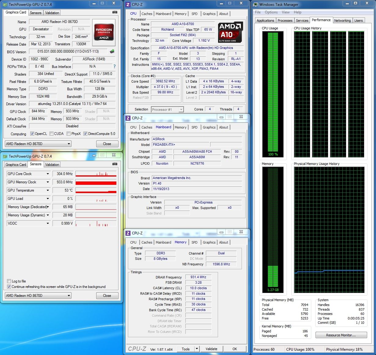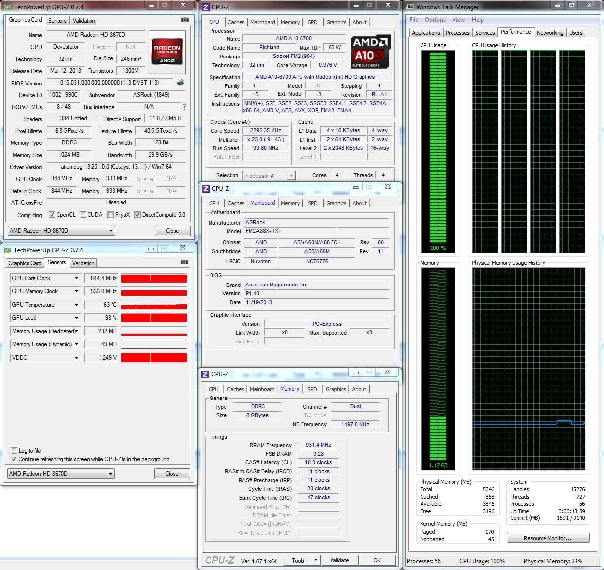 Observaţi absenţa unei plăci video dedicate. Aceasta nu a fost omisă, ci nu a fost folosită deoarece am dorit să monitorizez comportamentul plăcii de bază folosind soluţia grafică integrată în APU.