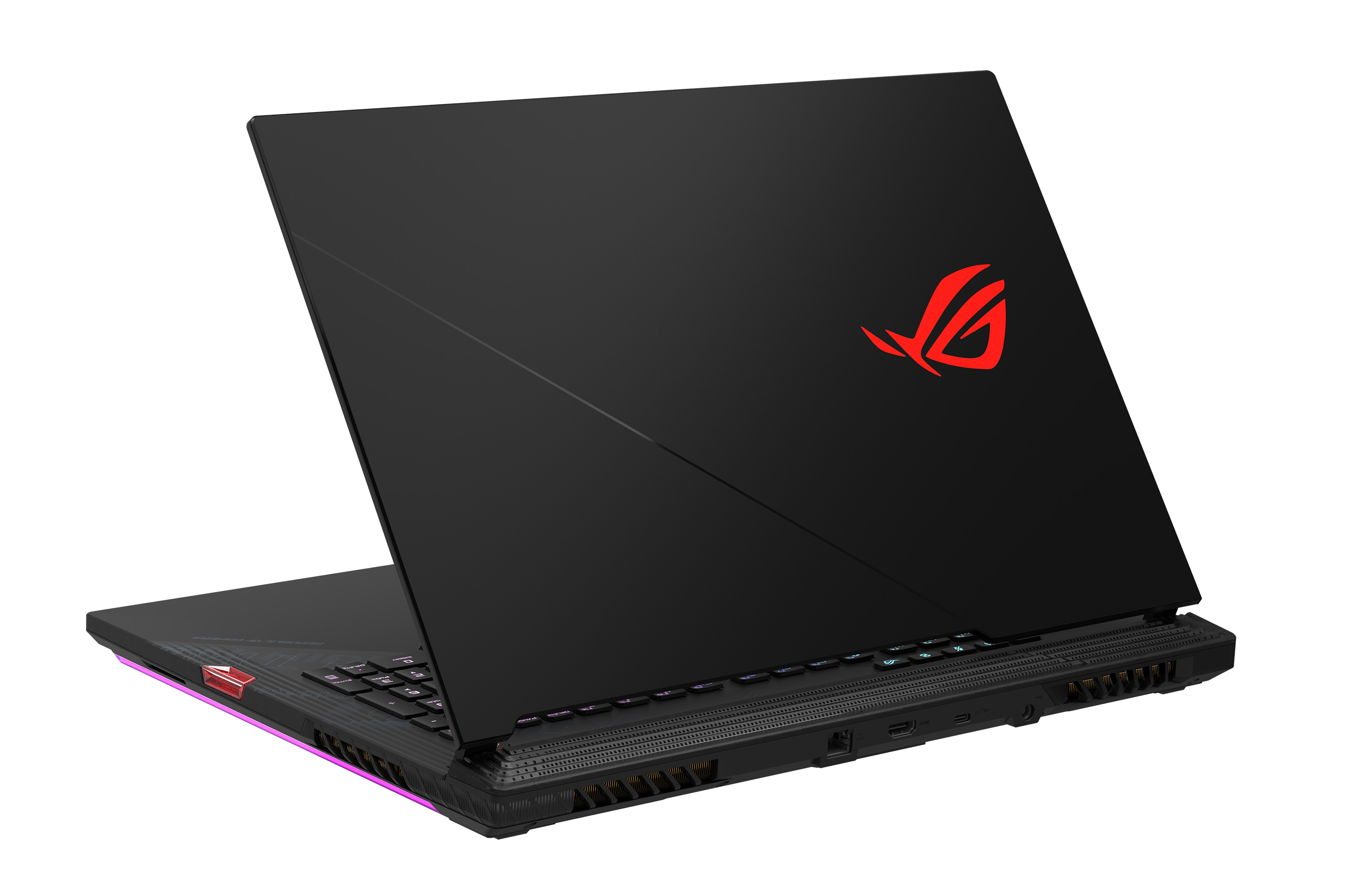 Dacă este disponibil accesul la rețeaua cablată, mufa Gigabit Ethernet din spate are cea mai mică latență pentru competițiile cu mulți jucători. Porturile suplimentare din spatele laptopului lasă spațiu pentru o gamă largă de periferice de gaming, cu o aglomerație minimă de cabluri. Portul USB 3.2 Type-C (USB-C) oferă transferuri uimitor de rapide la viteze Gen 2. Compatibilitatea sa DisplayPort 1.4 le permite utilizatorilor să conecteze un monitor extern G-SYNC pentru un gameplay fluid. Gamerii pot pune acțiunea pe ecranele mari cu HDMI 2.0b și pot privi filmele și jocurile pe un monitor 4K UHD sau TV de până la 60 Hz. Portul USB 3.2 Gen 1 Type-A din partea din spate este perfect pentru mouseul de gaming, existând alte două în partea stângă pentru gamepad și stocarea externă.