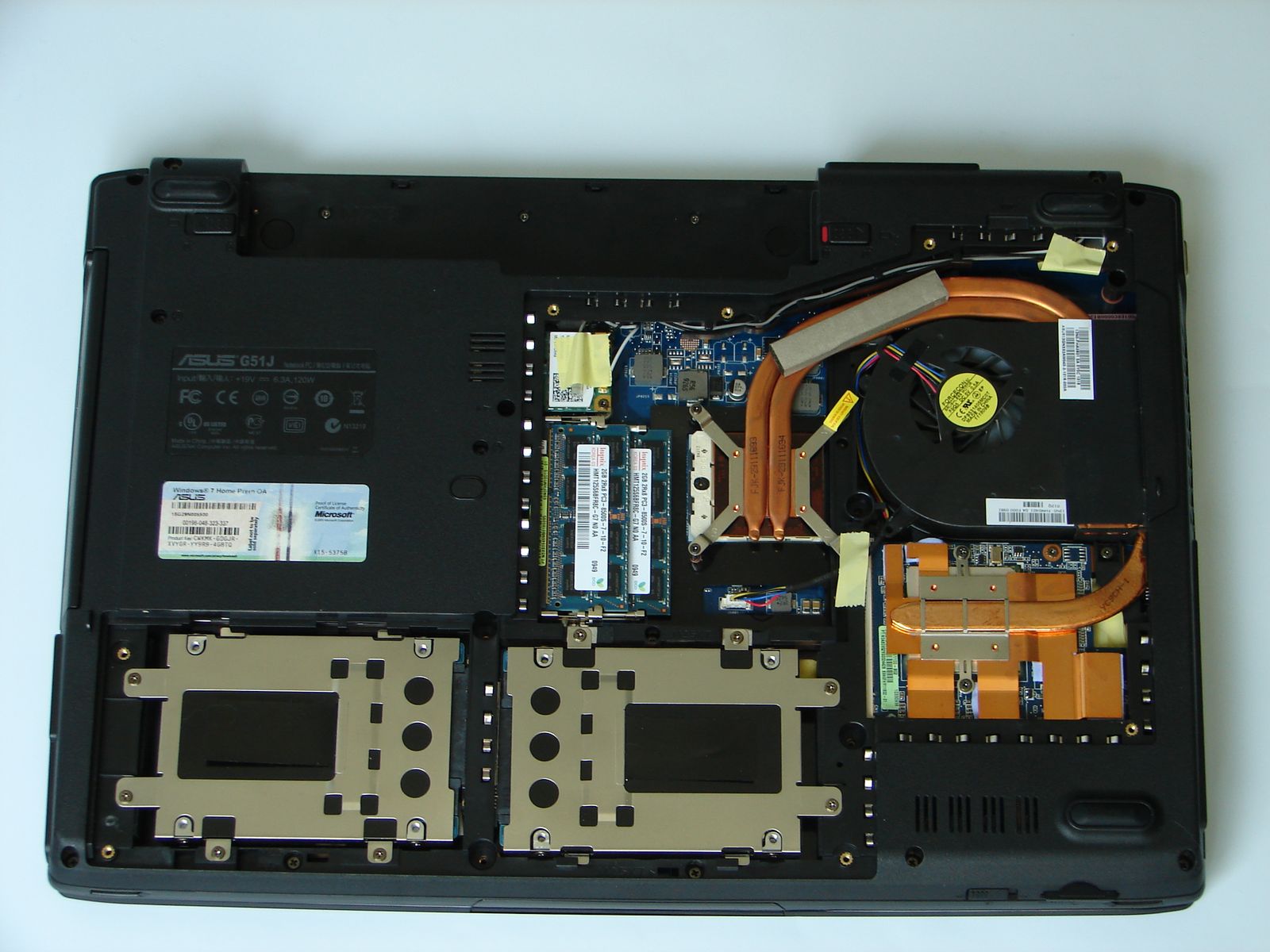 Capacul de pe partea inferioară a laptop-ului amintit mai devreme oferă utilizatorului acces aproape la toate componentele importante ale configuraţiei: harddisk-uri, module de memorie RAM, procesor, soluţie grafică, soluţie de răcire şi interfaţă wireless.