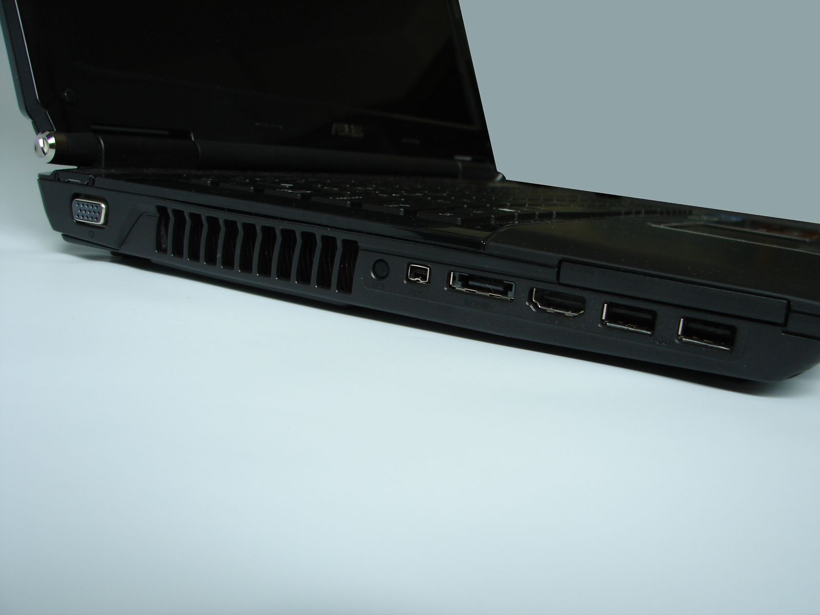 Partea stângă conţine două porturi USB, un port eSATA, conectorii HDMI şi D-Sub, conectorul FireWire şi fantele de evacuare a căldurii. În partea dreaptă, se găsesc celelalte două porturi USB, teri conectori audio şi unitatea optică. Conectorul de alimentare şi conectorul RJ45 sunt amplasaţi foarte inspirat, pe partea din spate a laptop-ului.