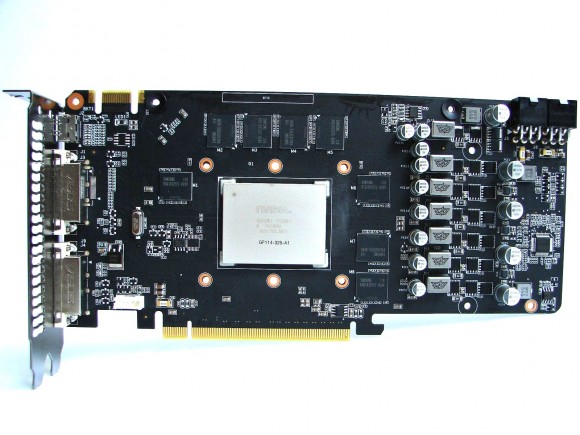 După înlăturarea cooler-ului, se poate analiza PCB-ul, care are o lungime de 23cm. Lungimea plăcii este însă de 25cm, din cauza cooler-ului care este ceva mai lung.