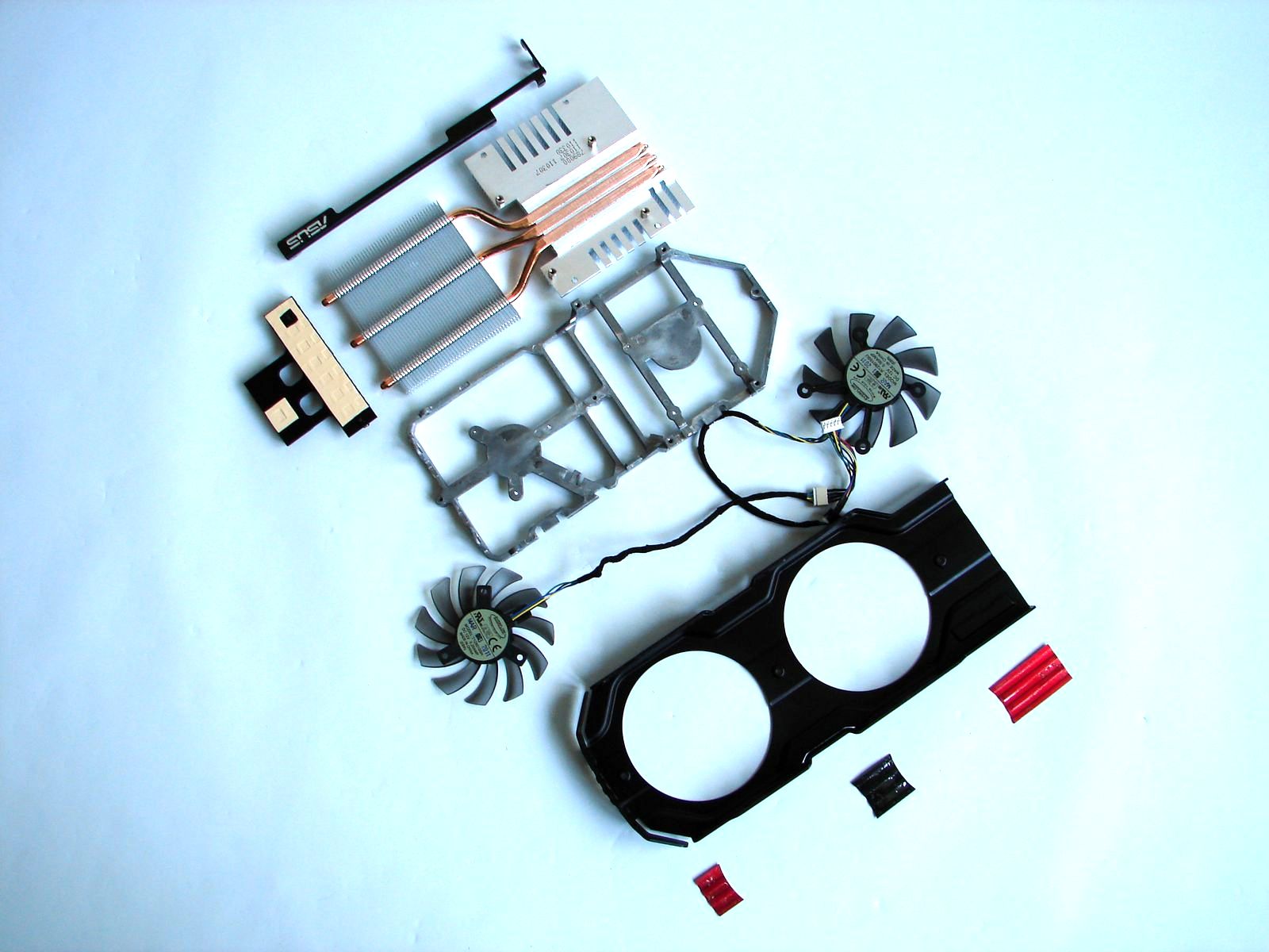 Heatsink-ul cu care este prevăzut nucleul grafic constă practic din două radiatoare din aluminiu, conectate între ele cu trei heatpipe-uri din cupru cu diametrul de 6mm. De acesta, este fixat un schelet metalic, de care sunt prinse cele două ventilatoare cu diametrul de 80mm şi apoi carcasa din aluminiu. Placa este prevăzută şi cu un al doilea heatsink, de dimensiuni reduse şi fixat cu push-pins, ce preia căldura produsă de VRM şi de controller-ul de voltaj. Ventilatoarele sunt diferite, cel din spate fiind Low Profile. Mai trebuie menţionată şi bagheta metalică fixată de muchia plăcii, care are rolul de a ranforsa PCB-ul.