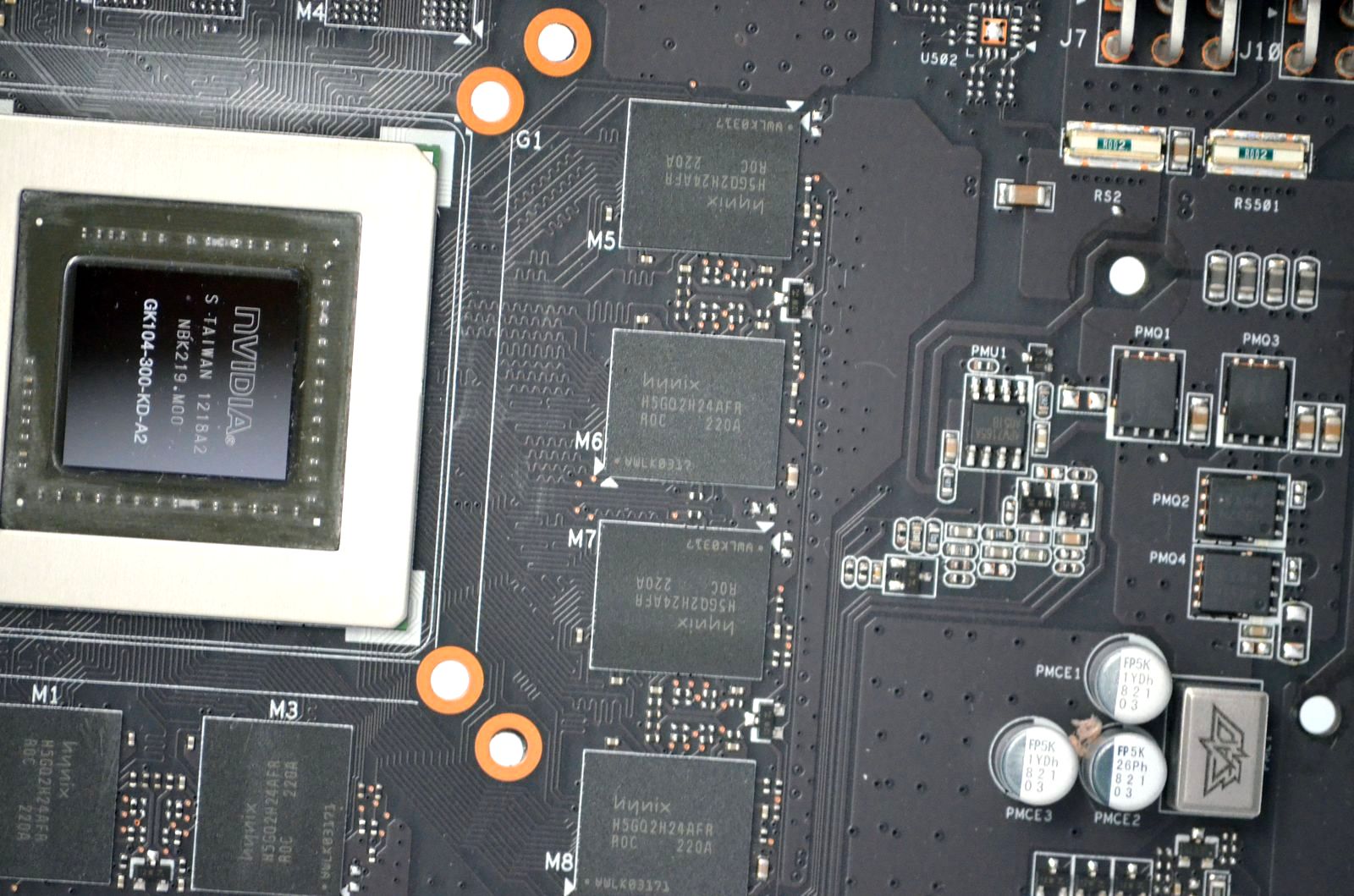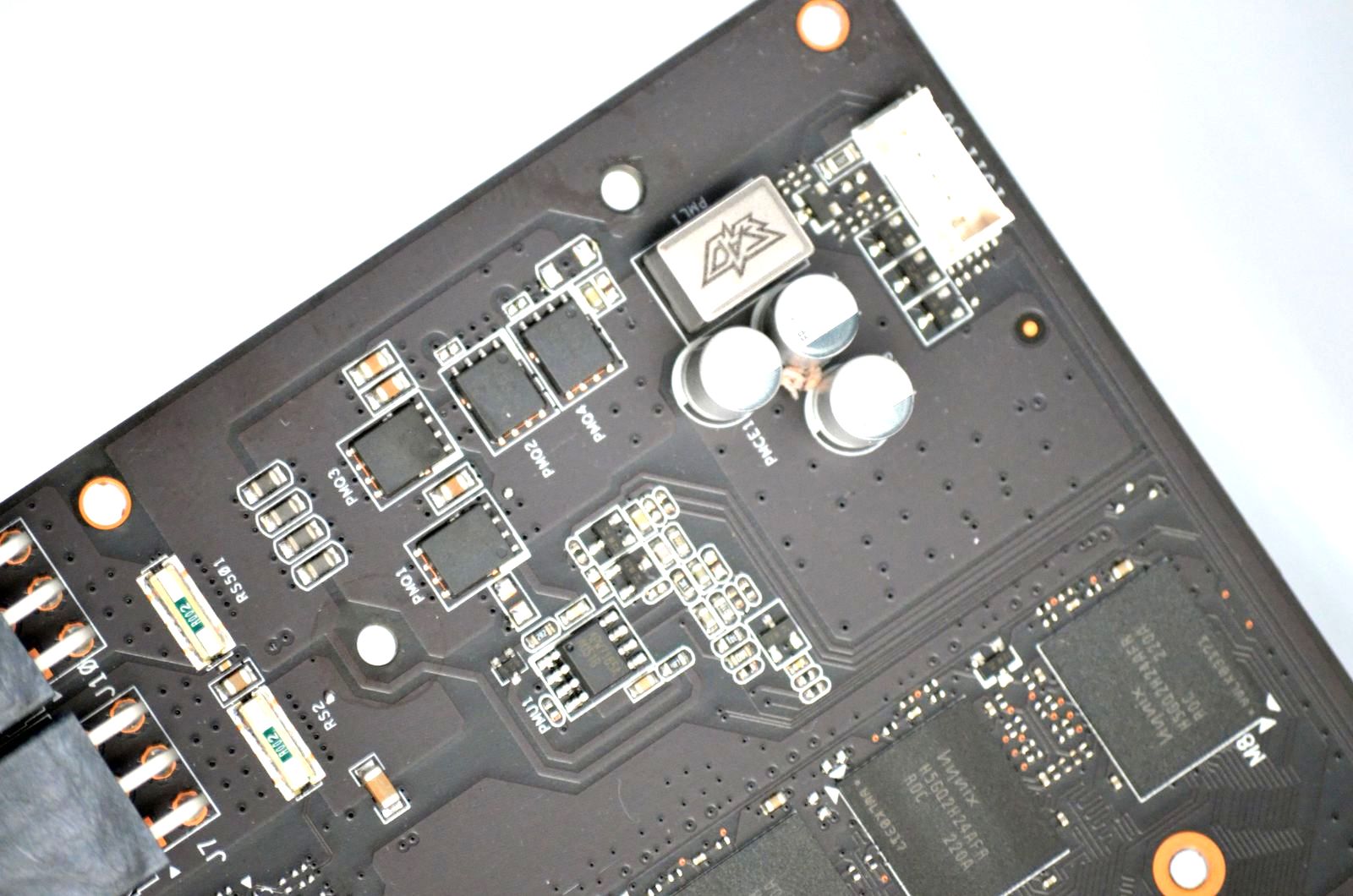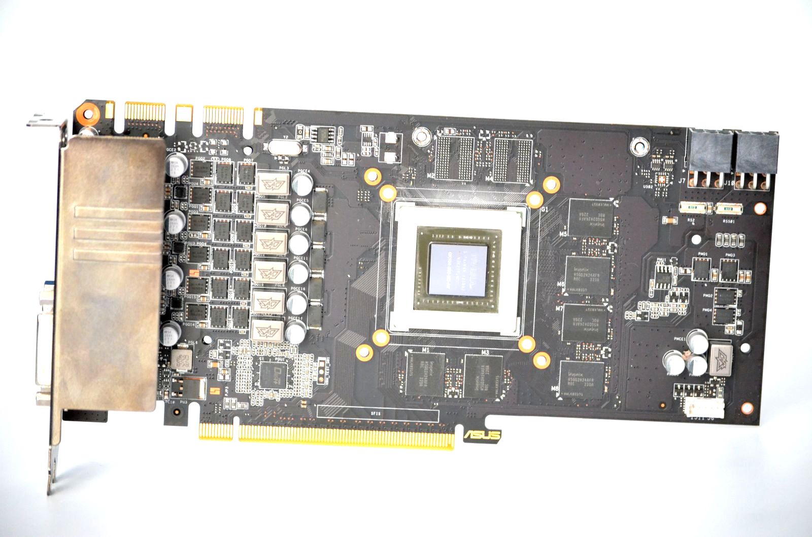 Cele şase chip-uri de memorie prezente pe PCB-ului lui ASUS GTX660 TI-DC2T-2GD5 sunt Hynix H5GQ2H24AFR-R0C.