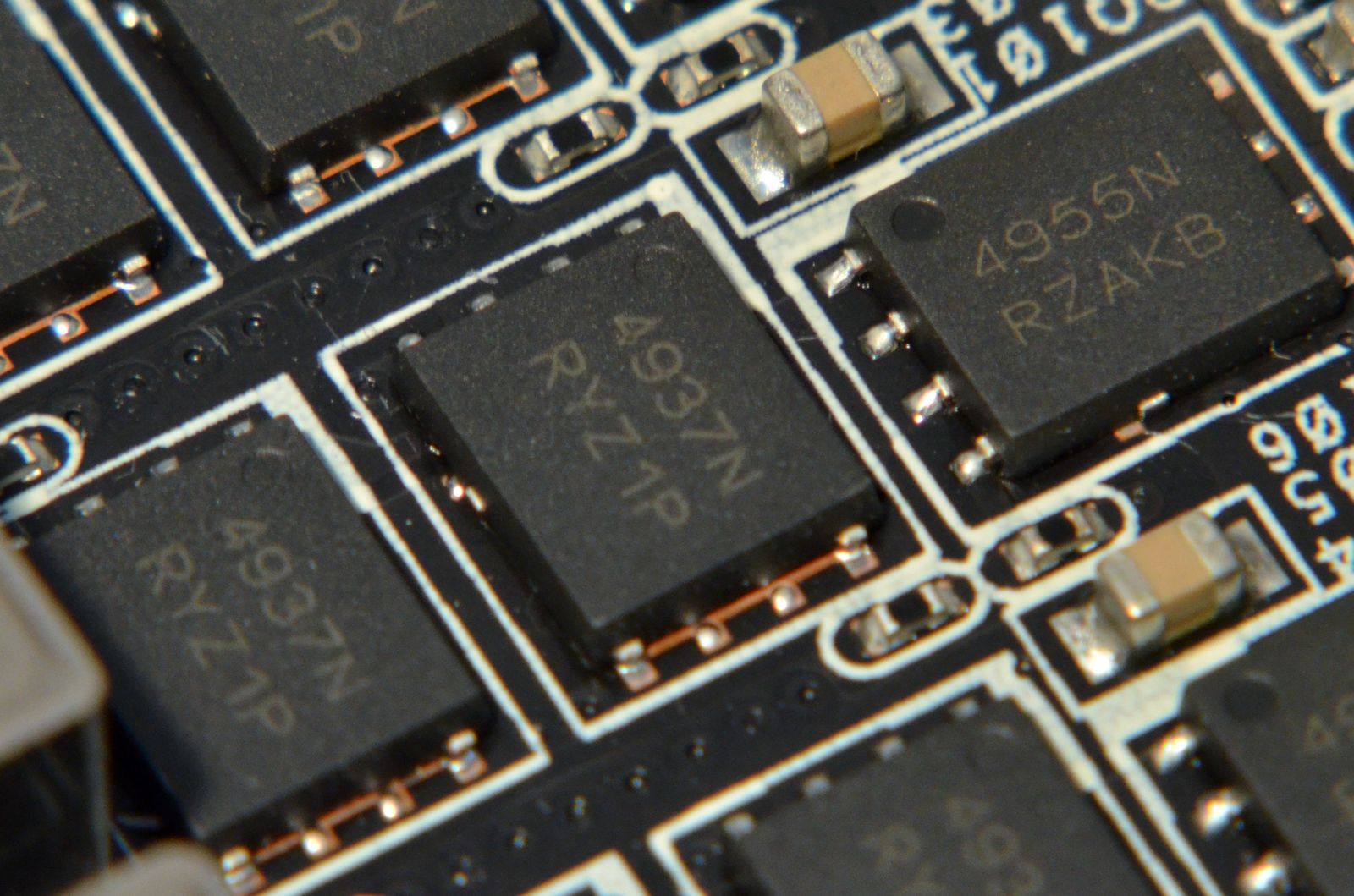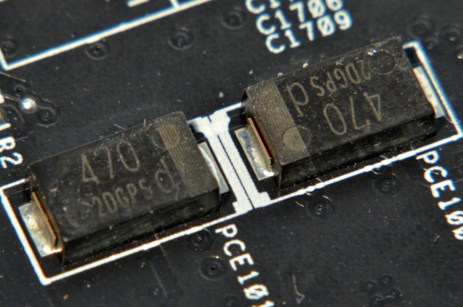 De asemenea, au mai fost adăugaţi condensatori şi pe partea dorsală a PCB-ului pentru a asigura o filtrare suplimentară a curentului furnizat chipset-ului.