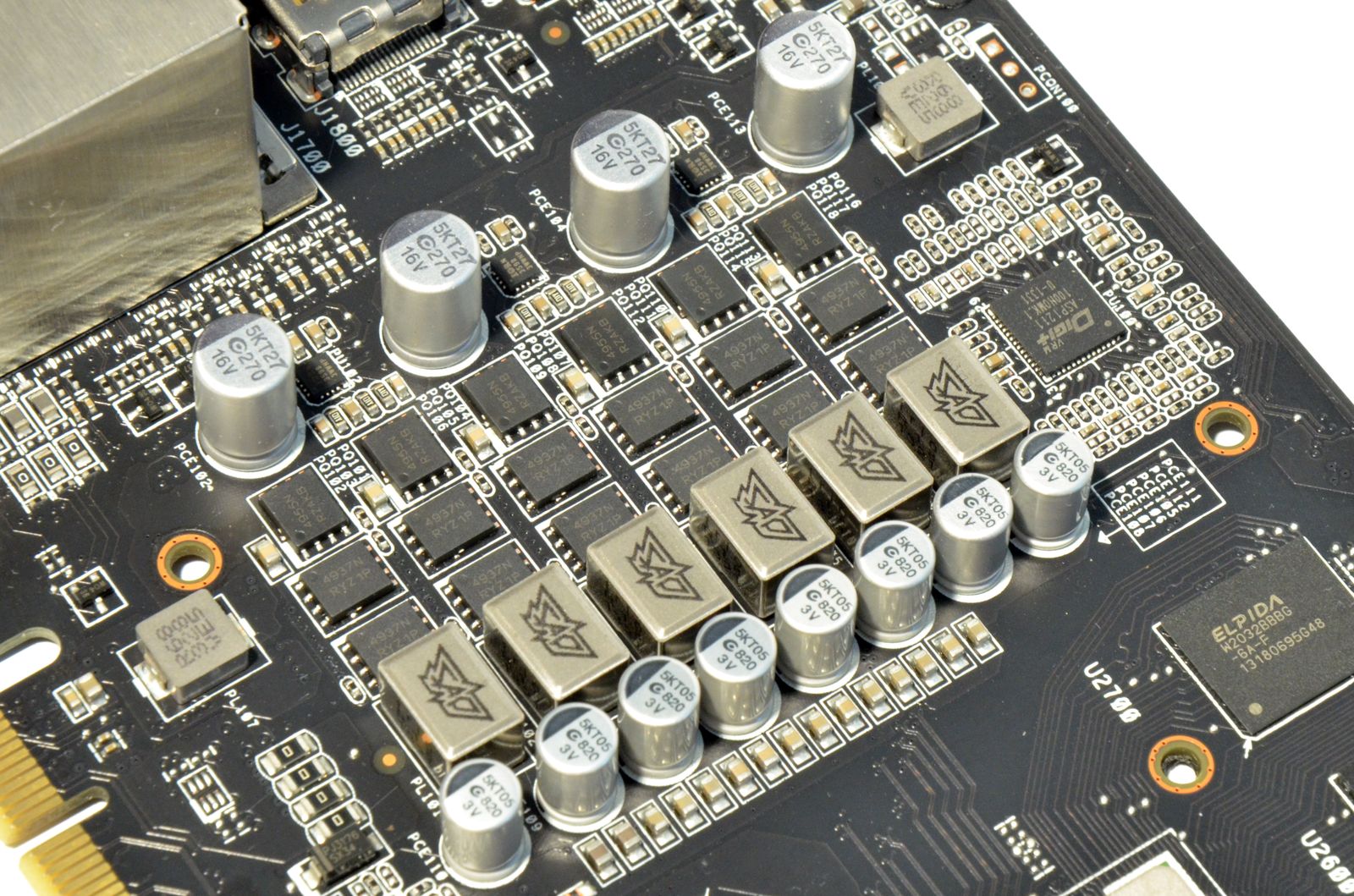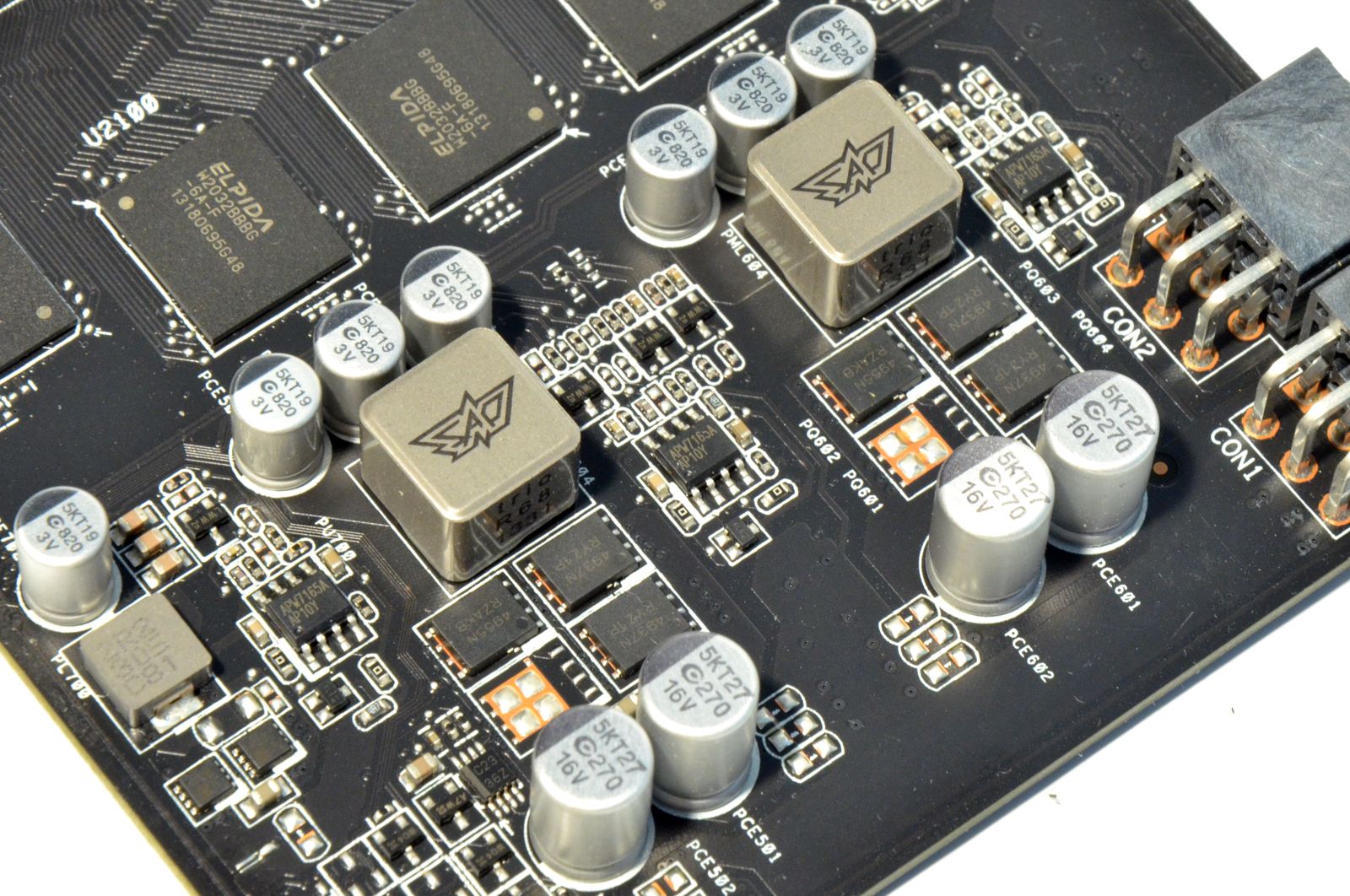VRM-ul DIGI+ este alcătuit din 6 stagii pentru GPU, plus alte 2 stagii pentru memoria video.