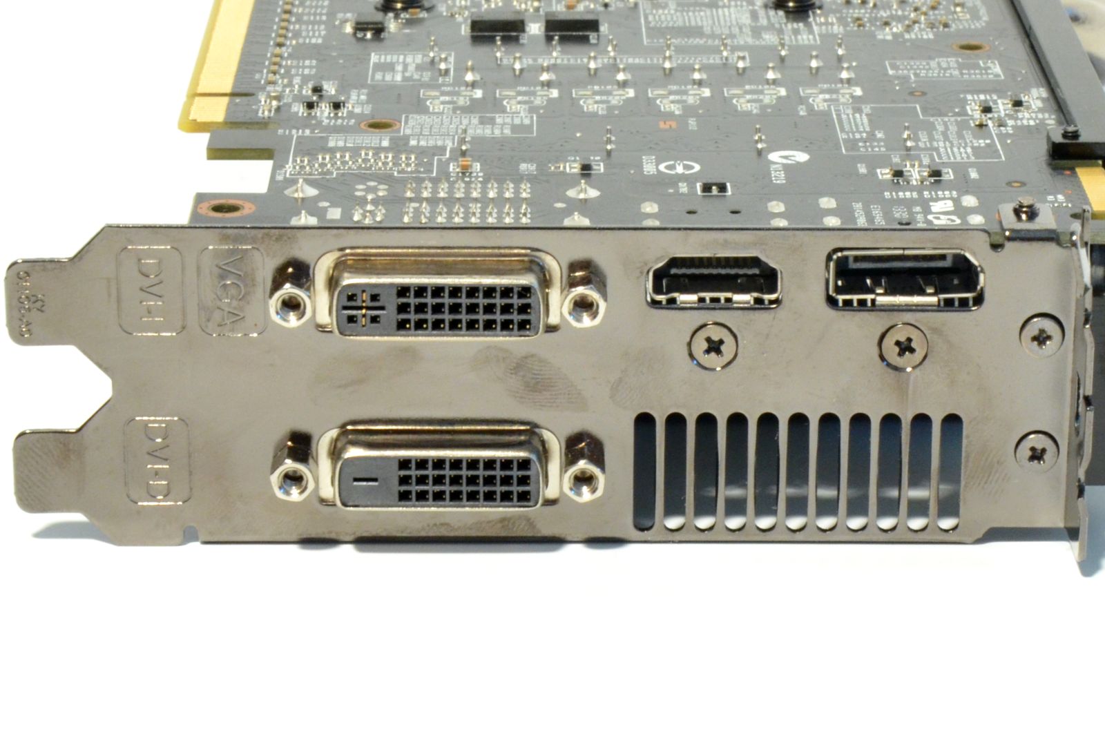 Bracket-ul dual-slot conţine conectorii standard – DVI-D, DVI-I, HDMI şi DisplayPort – iar pentru alimentarea cu energie sunt folosiţi 2 conectori cu 6 pini.