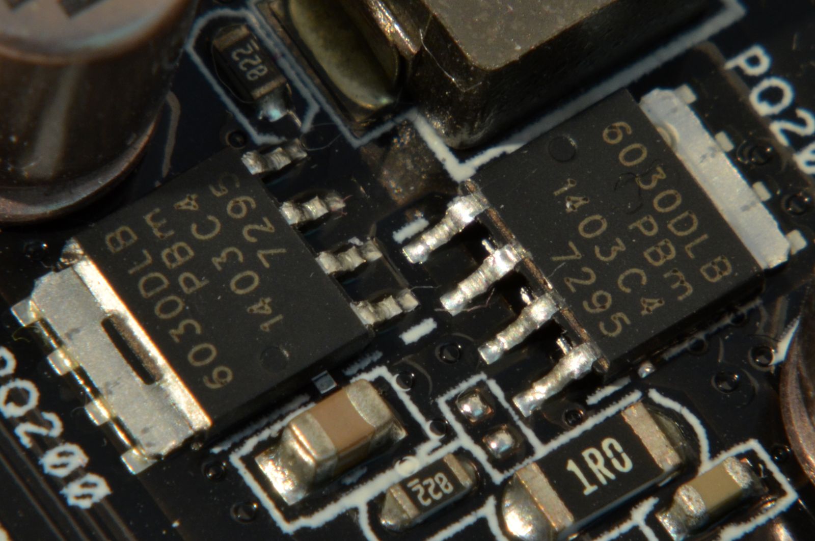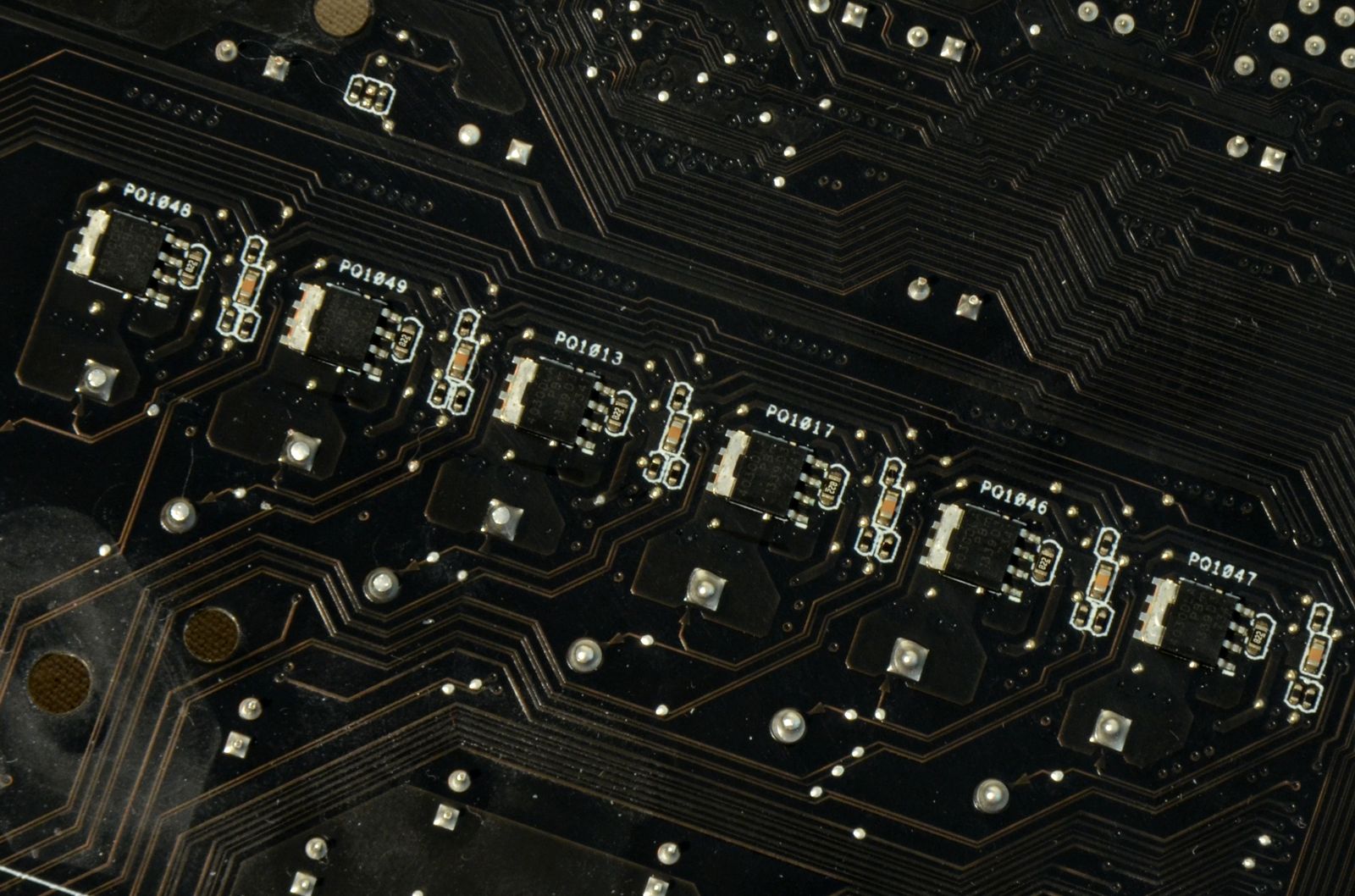 Primele 6 faze folosesc câte 1 MOSFET 6030DLB şi 2 4030DLA creaţi de NXP, plus 1 driver IR3535 produs de International Rectifier. Celorlalte 2 faze le lipseşte unul dintre cei 2 tranzistori MOSFET 4030DLA – mai exact, cel amplasat pe spatele PCB-ului.