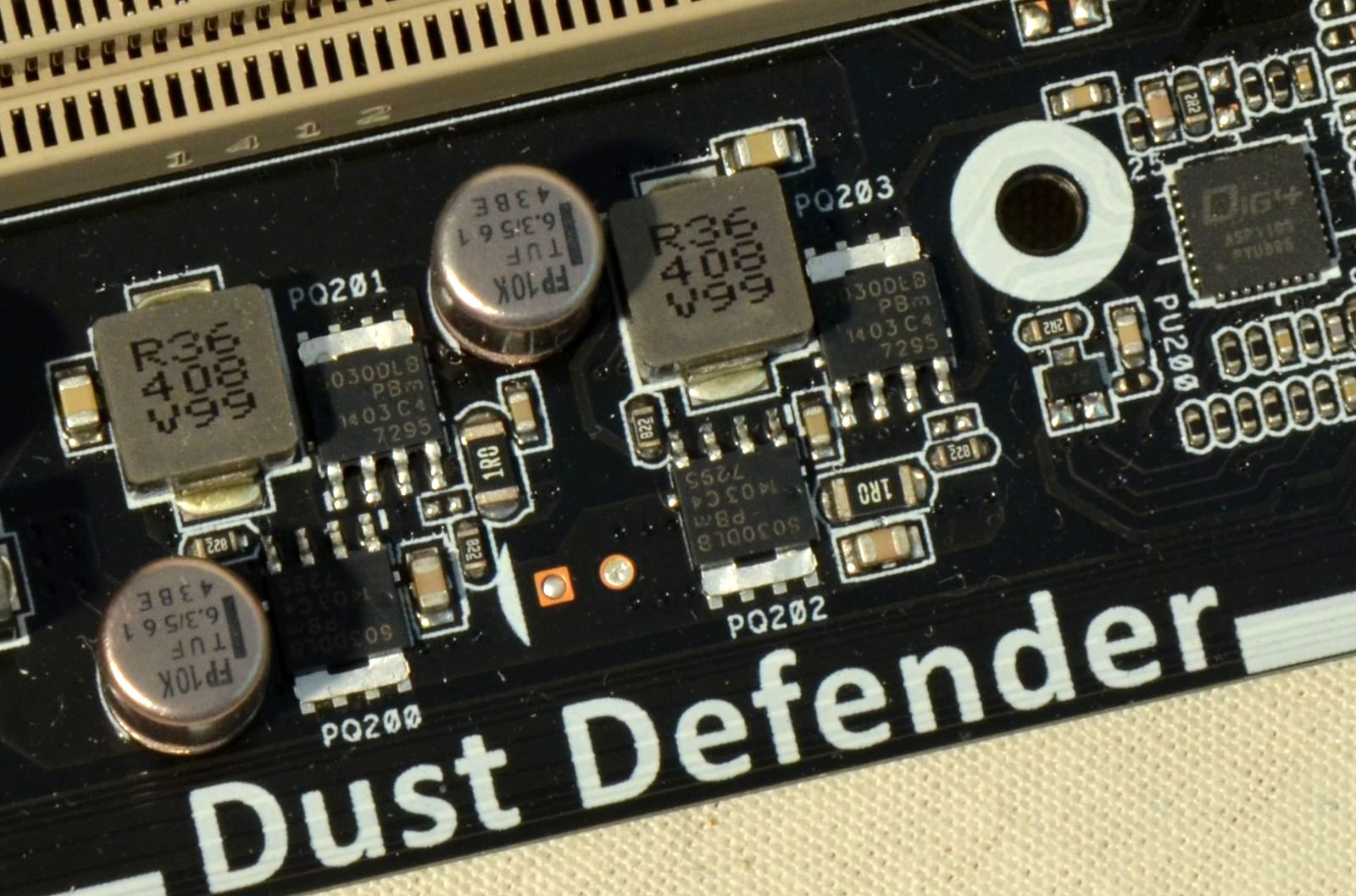 Acestea sunt completate de bobine cu un design mai deosebit – promovate ca TUF New Alloy Chokes şi de condensatori solizi marcaţi cu iniţialele TUF.
