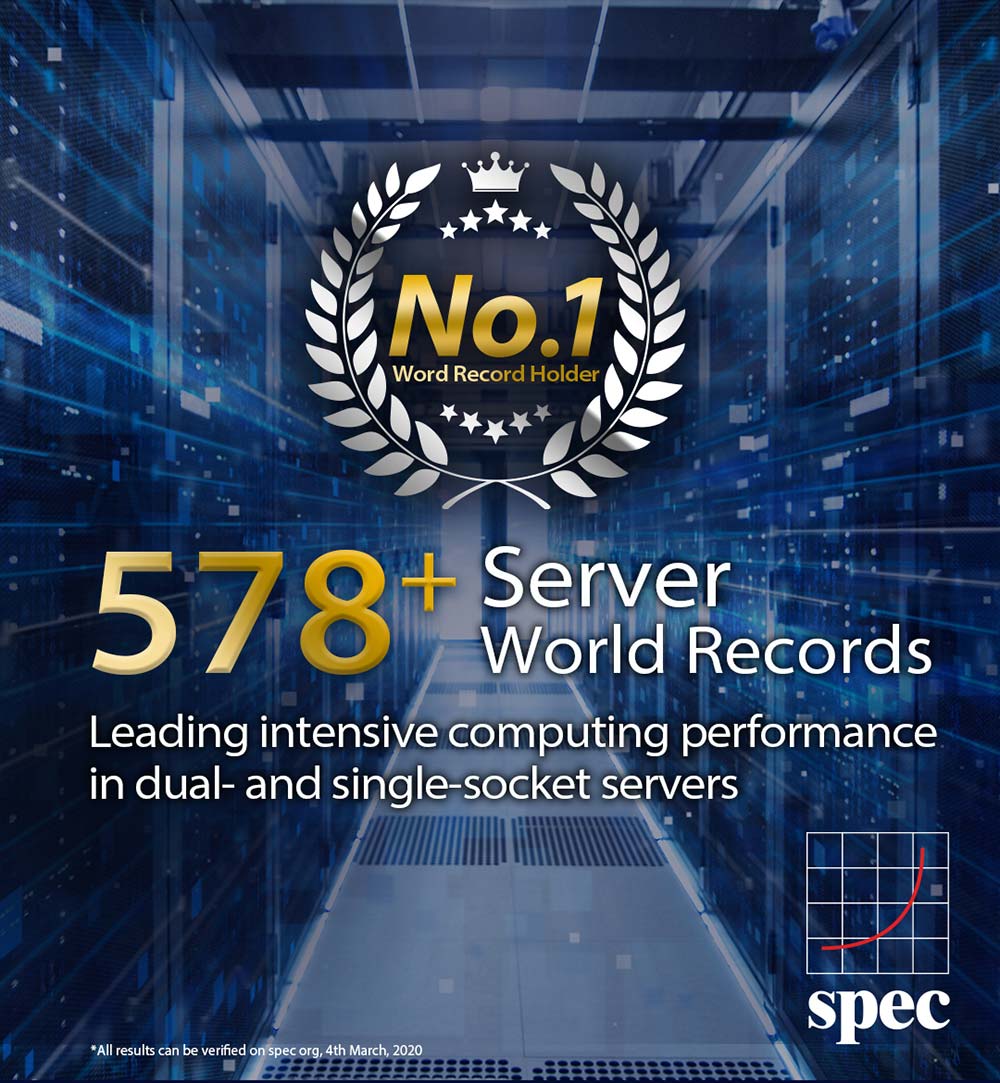 Toate aceste recorduri mondiale au fost stabilite de serverele ASUS RS500A-E10 și RS700A-E9V2, echipate cu procesoare EPYC 7002, ce furnizează performanțe de două ori mai ridicate și o capacitate de calcul în virgulă mobilă de patru ori mai mare față de generația procedentă 7001, având totodată suport pentru până la 64 de nuclee, 128 de fire de execuție, 8 canale DDR4 3200 și 128 de linii PCIe 4.0, fiind ideal pentru pentru inferență AI, virtualizare, VDI, analitice și implementări definite de software.