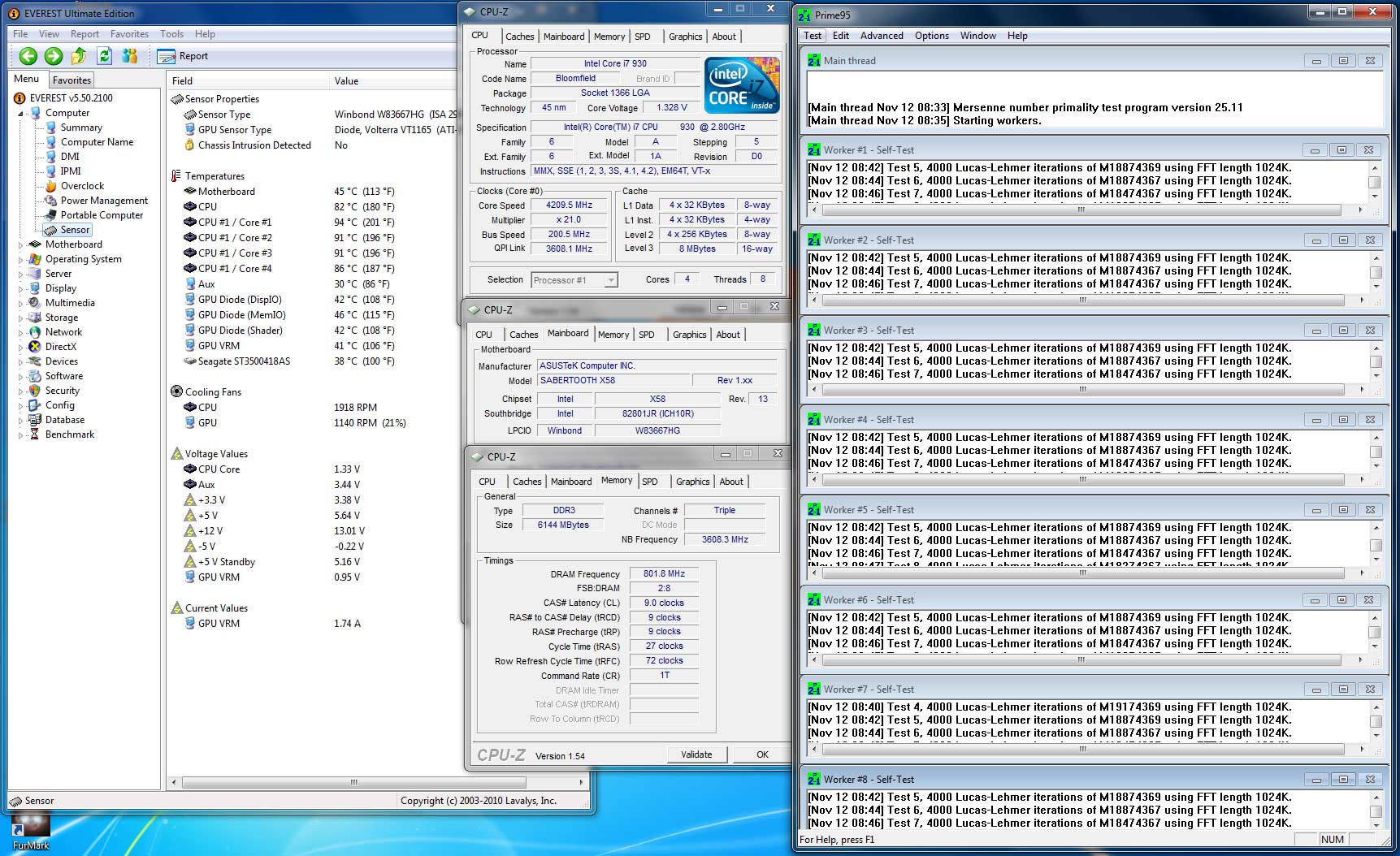 Rezultatele pozitive nu au întârziat să apară, ASUS TUF SABERTOOTH X58 depăşind practic fără efort bariera celor 4 GHz, urcând până la un overclocking final de 4.2GHz, folosind o frecvenţă BLCK de 200MHz.Din păcate pentru menţinerea stabilităţii la această frecvenţă  de procesor, a fost nevoie să tactez memoria RAM la numai 1600MHz. Aceasta limitare ar putea fi însă legată de capabilităţile mai reduse ale controller-ului de memorie integrat, pus la dispoziţie de modelul Core i7 930.