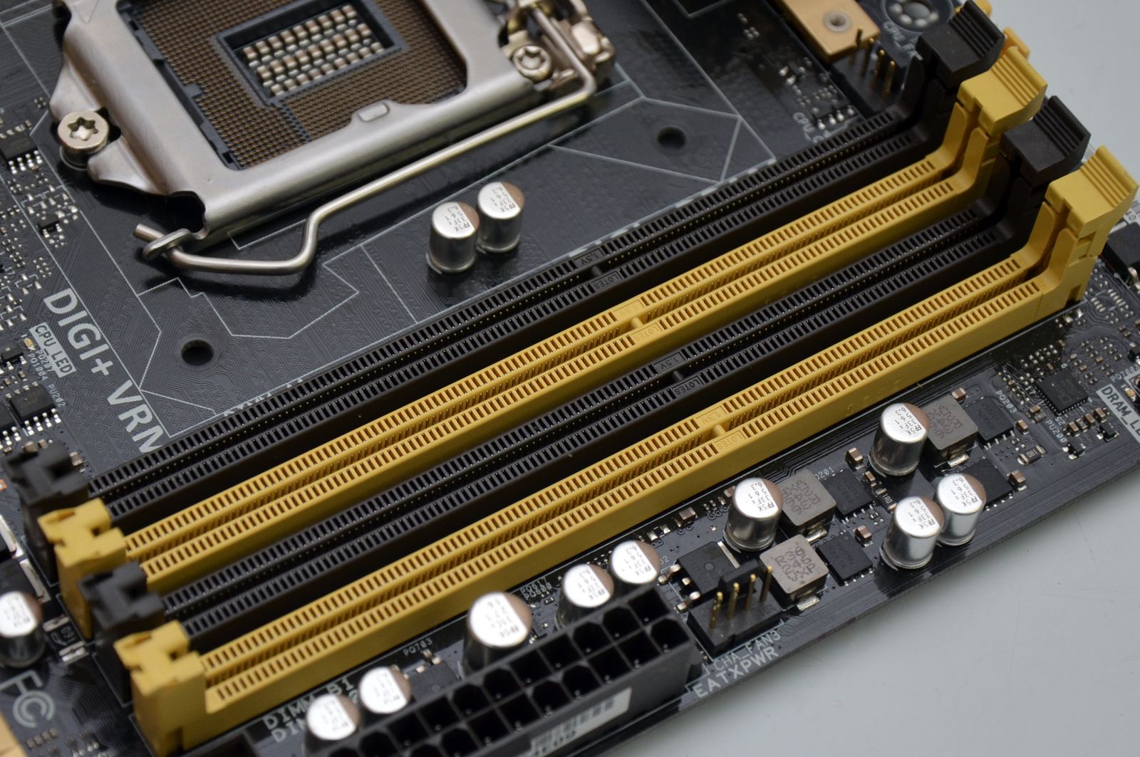 Sunt prezente 3 slot-uri PCI-Express x16 3.0 (care pot funcţiona în modurile single 16, dual x8 sau x8/x4/x4) şi 4 slot-uri PCI-Express x1 2.0. Cele 4 bancuri de memorie memorie DDR3 pot adăposti cel mult 32GB cu o frecvenţă specificată de producător de până la 3GHz.