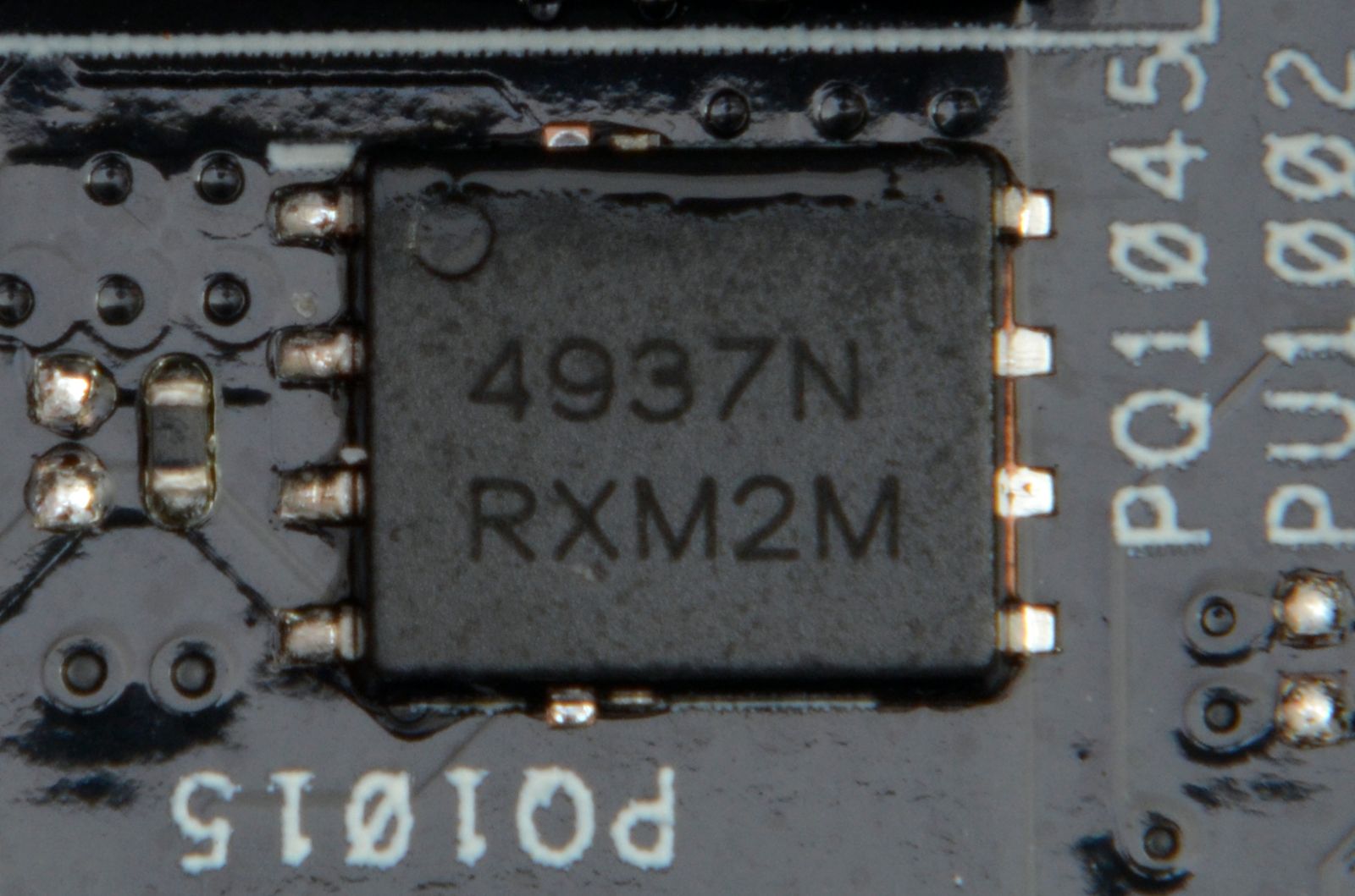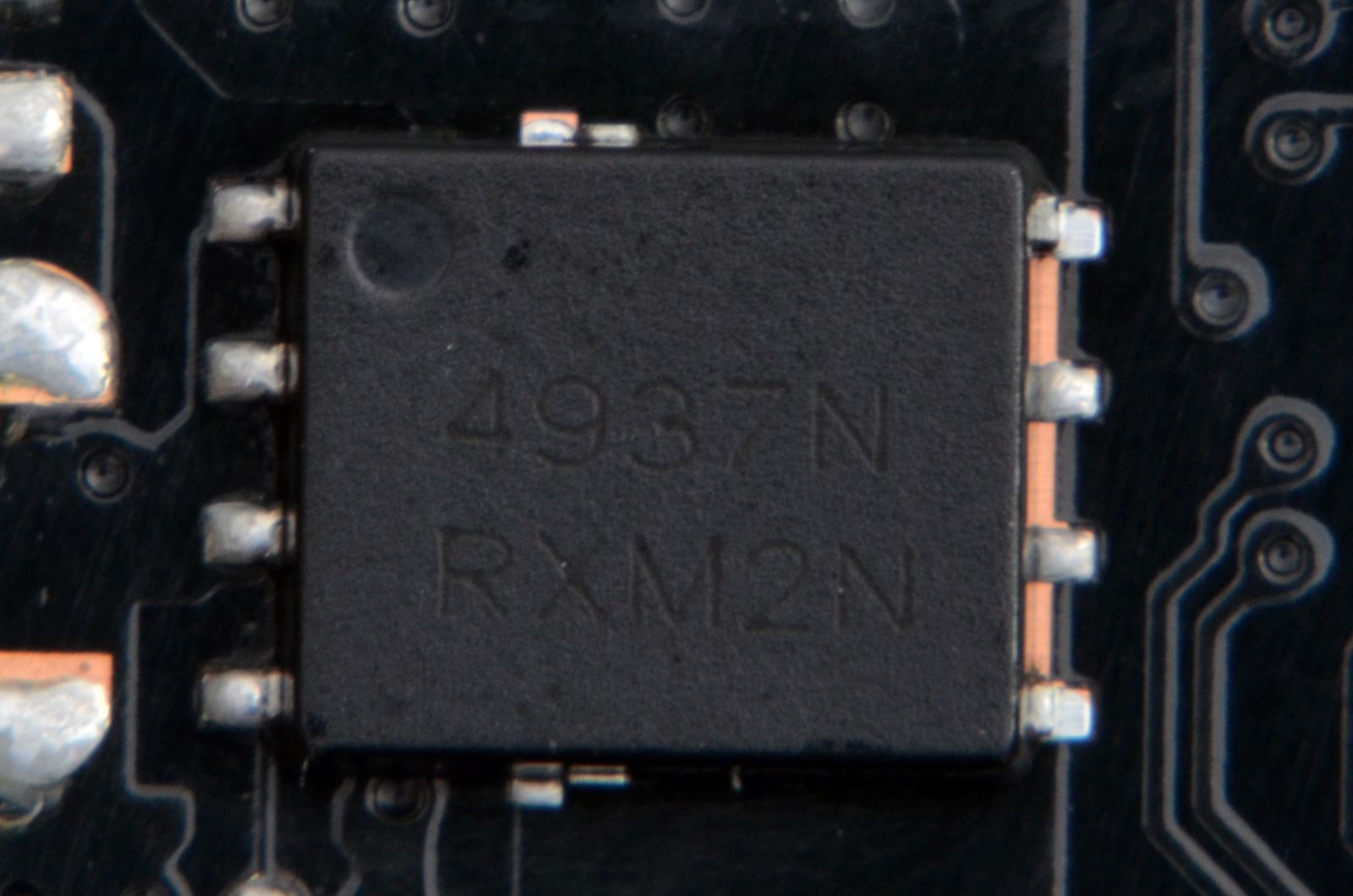 În cazul procesorului, fiecare stagiu utilizează câte 2 tranzistori MOSFET NTMFS4937N şi unul NTMFS4955N produşi de ON Semiconductor, plus câte 1 driver IT3535 creat de International Rectifier.