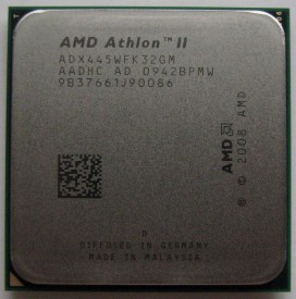 Procesorul testat astăzi, Athlon II X3 445, reprezintă cel mai rapid procesor triple core cu nucleu Propus lansat până în clipa de faţă. Nucleele de procesare ale acestui model sunt tactate la 3100MHz. De asemenea, este folosită revizia C3 a nucleului Propus pentru realizarea procesorului testat. Celelalte modele de Athlon II X3 încă folosesc revizia C2, însă vor trece pe revizia nouă imediat ce stocurile de modele cu revizia C2 vor fi epuizate. Puteţi să deosebiţi uşor procesoarele dotate cu noua revizie de restul după ultima literă a codului OPN inscripţionat pe heatsink-ul procesorului. Astfel, codul OPN al modelelor care folosesc revizia C3 se termină cu literele “GM”, comparativ cu “GI” pentru modelele care folosesc revizia C2.