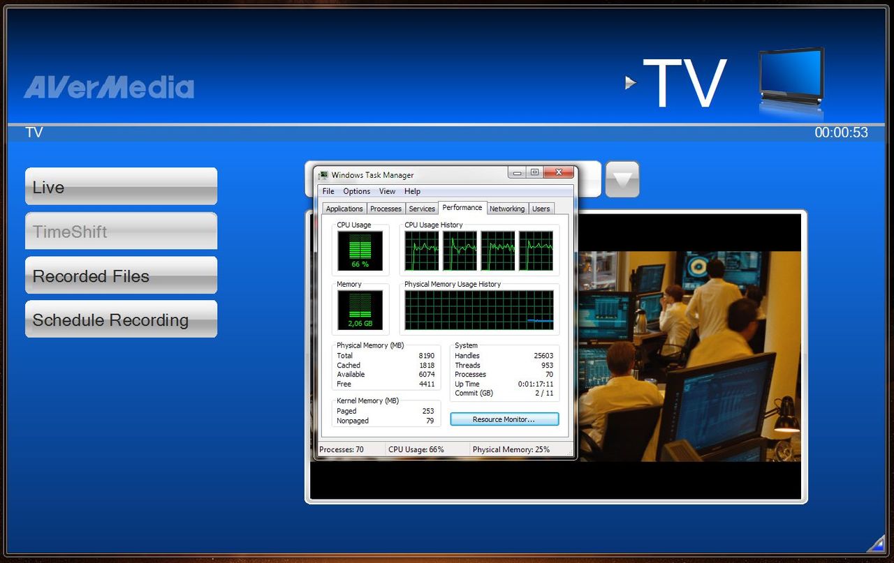 Încărcarea procesorului Phenom II 955BE a fost în media de 66%, la aceasta contribuind şi previzualizarea în timp real a semnalului.