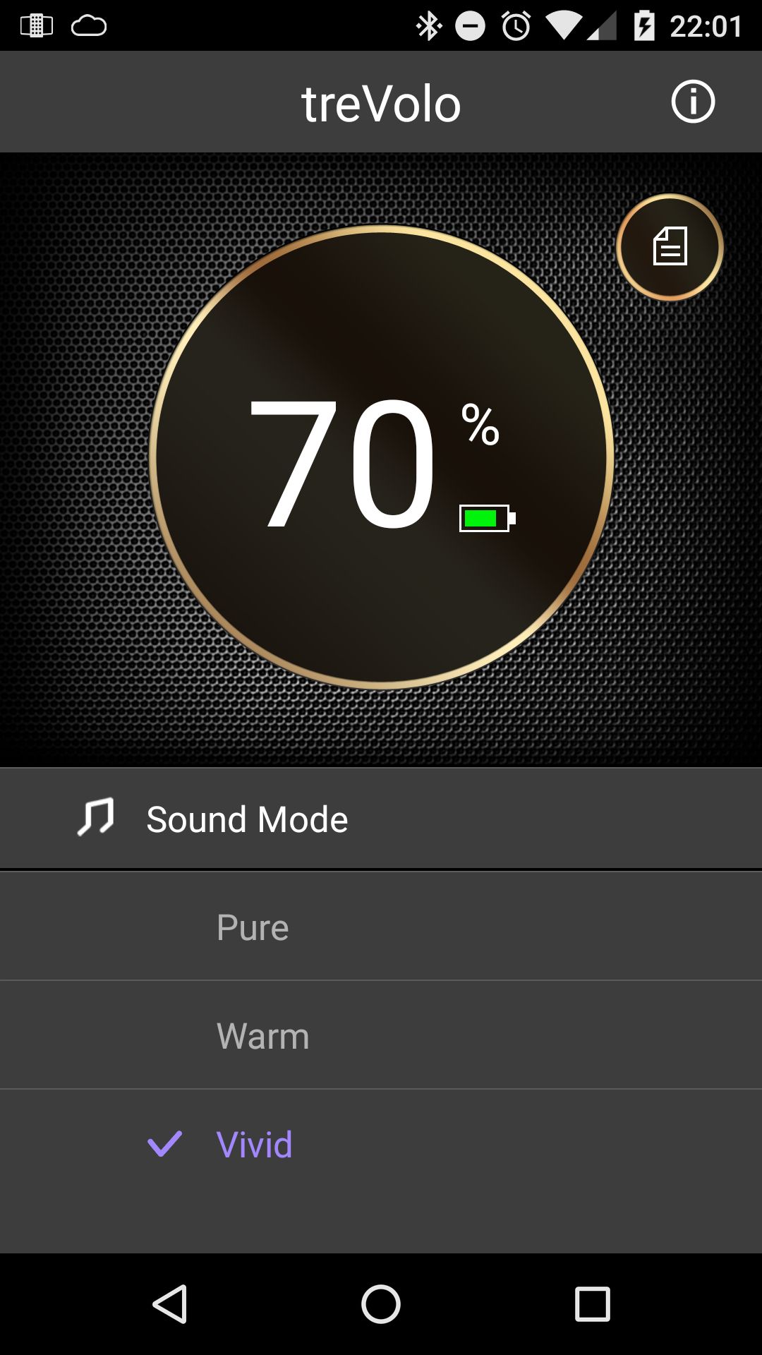 După cum puteţi vedea mai sus, BenQ treVolo vine cu 3 moduri de redare, preconfigurate de producător: Pure, Warm şi Vivid. Personal, nu am simţit cine ştie ce diferenţă între Pure şi Warm, unde Pure ar trebui să reprezinte o redare nealterată, iar Warm o redare cu accent pus pe bass. Cred că ambele sunt potrivite în special pentru jocuri şi filme, dar şi pentru melodii ce se bazează pe anumite instrumente de percuţie. Modul Vivid este însă de departe recomandat pentru cei care preferă o redare fidelă a frecvenţelor înalte şi medii şi sunt convins că va fi mult mai pe placul puriştilor, neimpresionaţi de fel de prelucrările comerciale.
