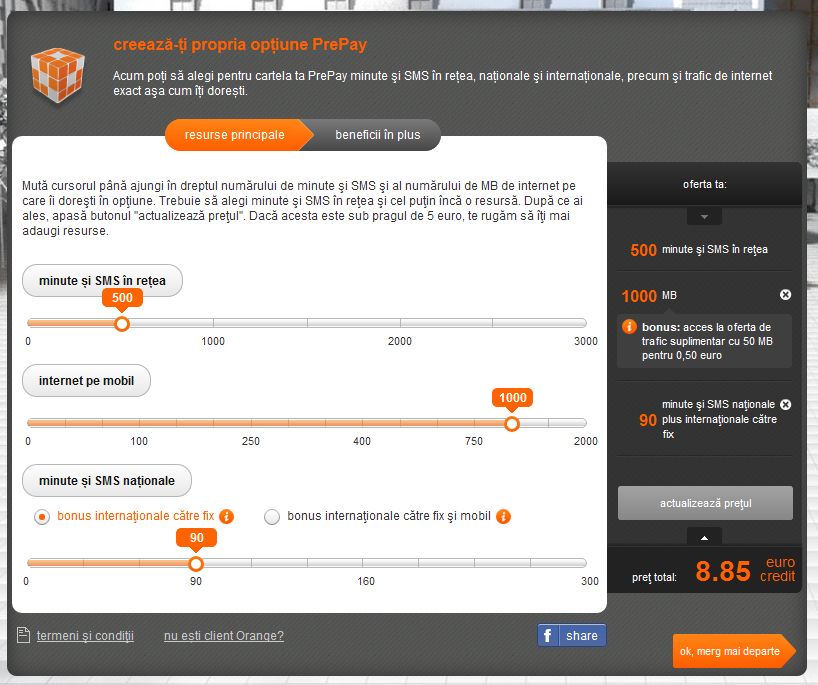 Orange România a lansat astăzi, în premieră pe meleagurile noastre, o opțiune foarte interesantă pentru utilizatorii de cartele prepay: un site pentru configurarea opțiunilor după preferințele utilizatorilor.