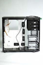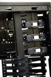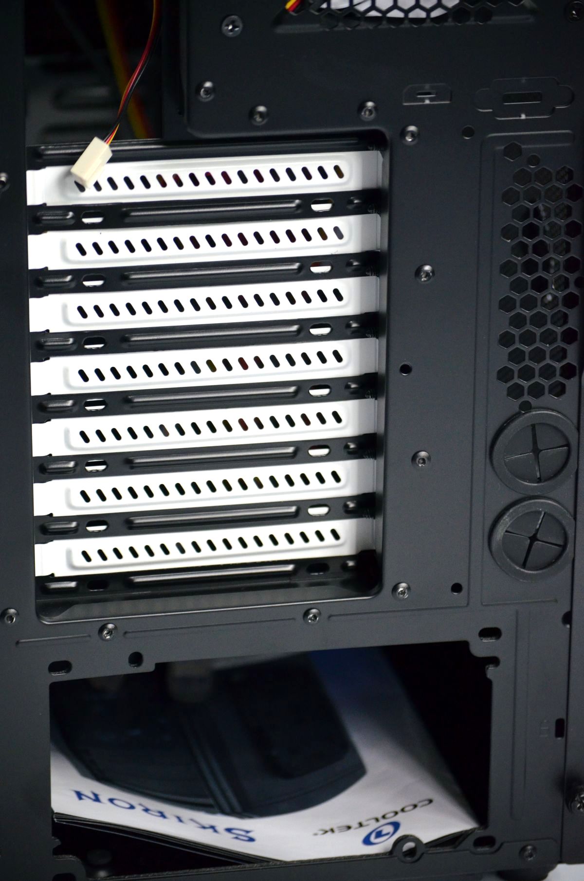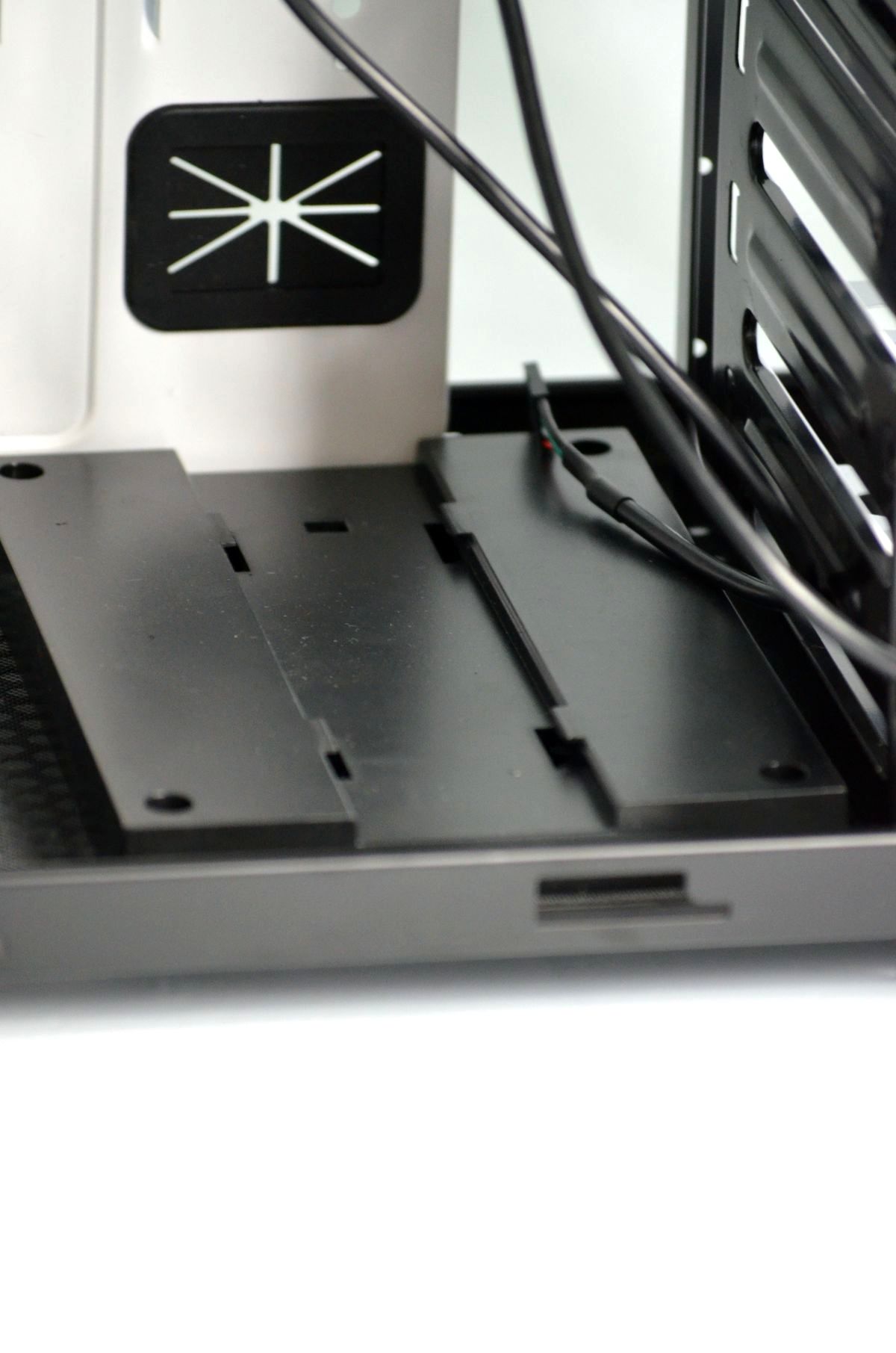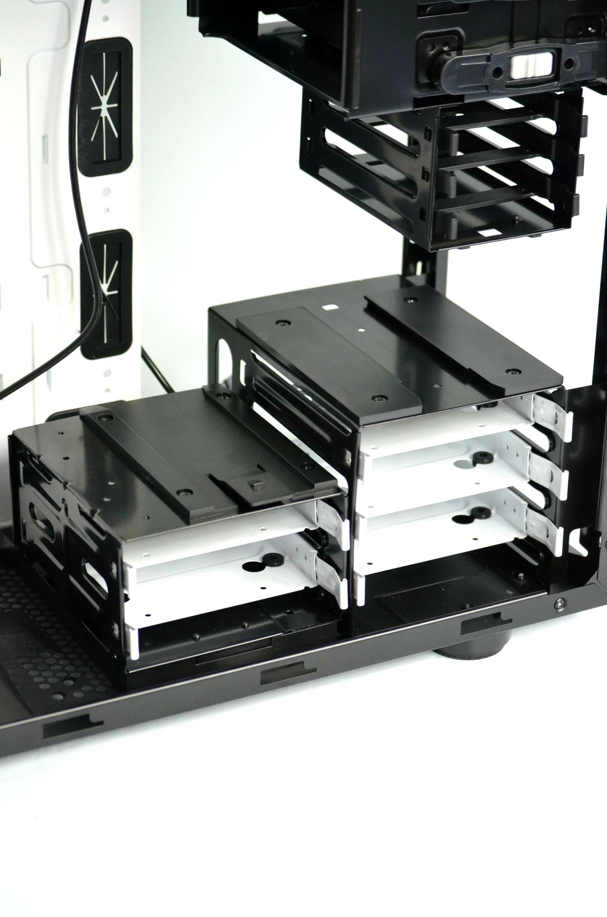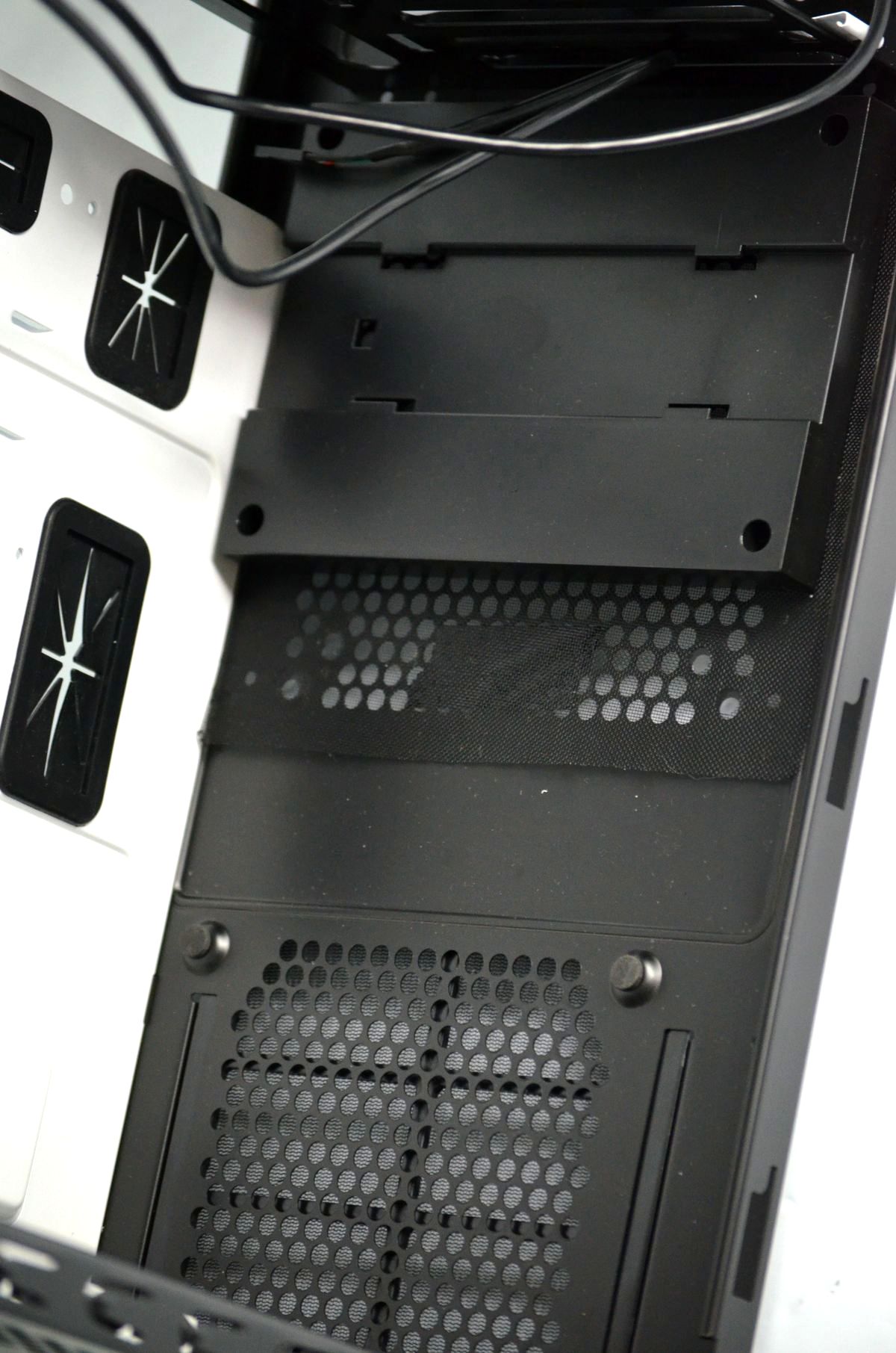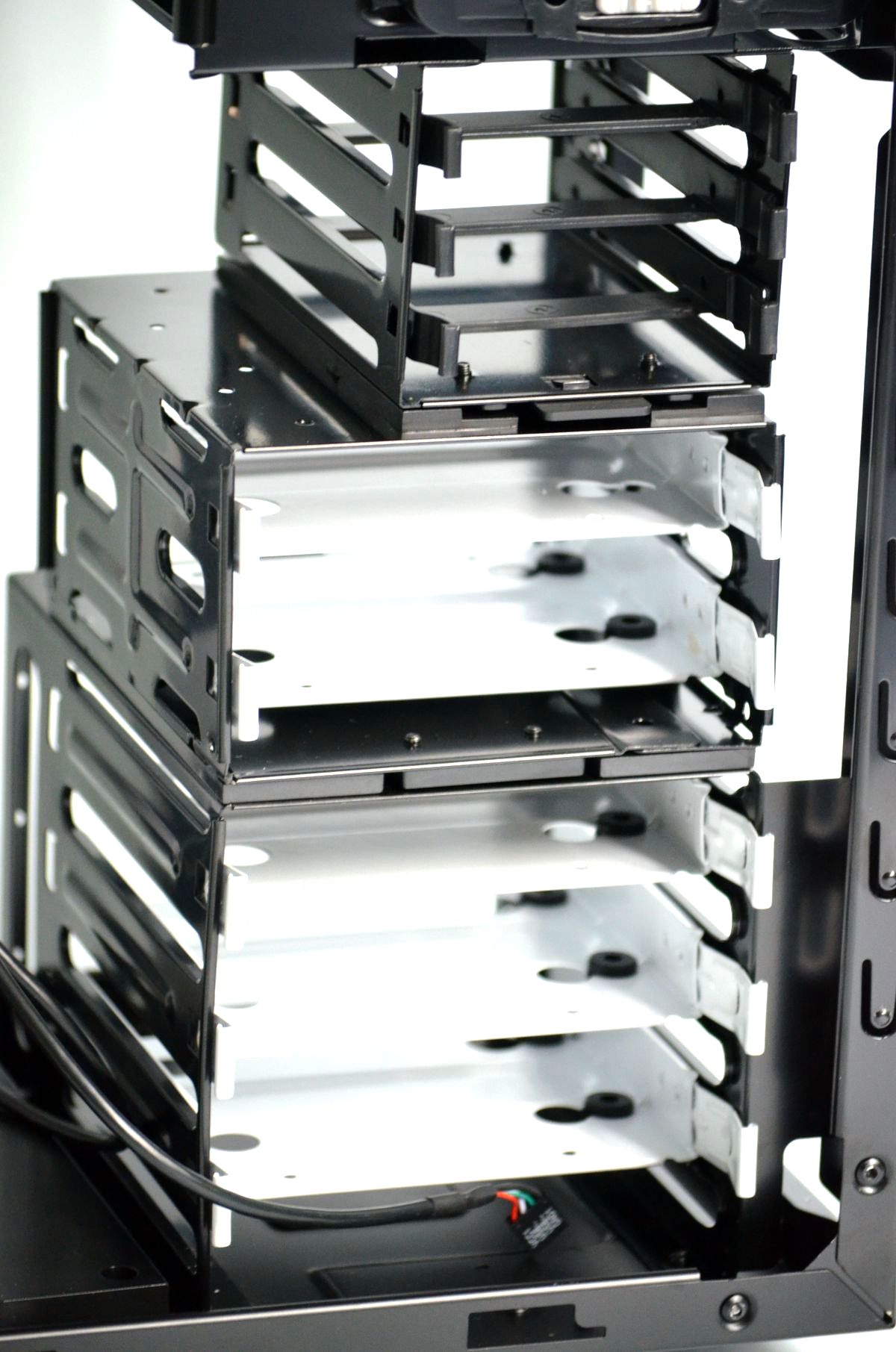 Înlăturarea unuia dintre cele două cage-uri nu este posibilă fără motiv. Acesta poate fi montat alături, pentru a permite utilizatorului să monteze plăci video mai lungi. Pentru acest procedeu, carcasa a fost prevăzută cu o şină din plastic special concepută la care va trebui să renunţaţi dacă doriţi să fixaţi un ventilator de podeaua carcasei.