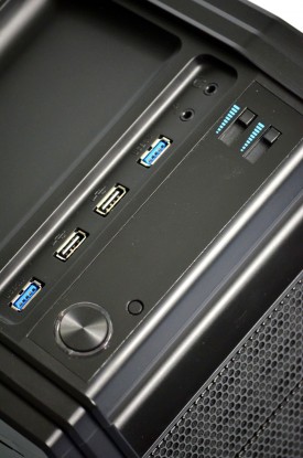 Partea superioară conţine cea mai mare parte a panoului de control: butoane Power şi Reset, LED-uri pentru Power şi HDD, două porturi USB 2.0 şi două porturi USB 3.0, conectorii audio stereo pentru microfon şi căşti şi două module de control de turaţie ce pot gestiona câte trei ventilatoare fiecare. Tot aici se mai observă suprafaţa perforată de mari dimensiuni.