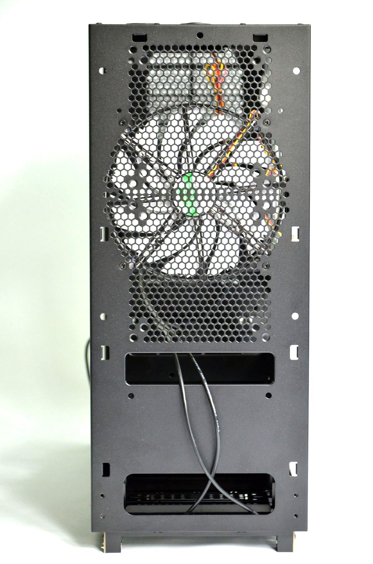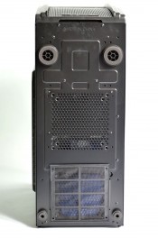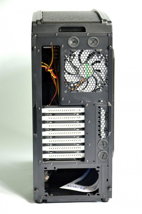 Se observă prezenţa unui ventilator de 120mm, a patru orificii pentru soluţii de răcire cu apă şi a patru slot-uri de expansiune.