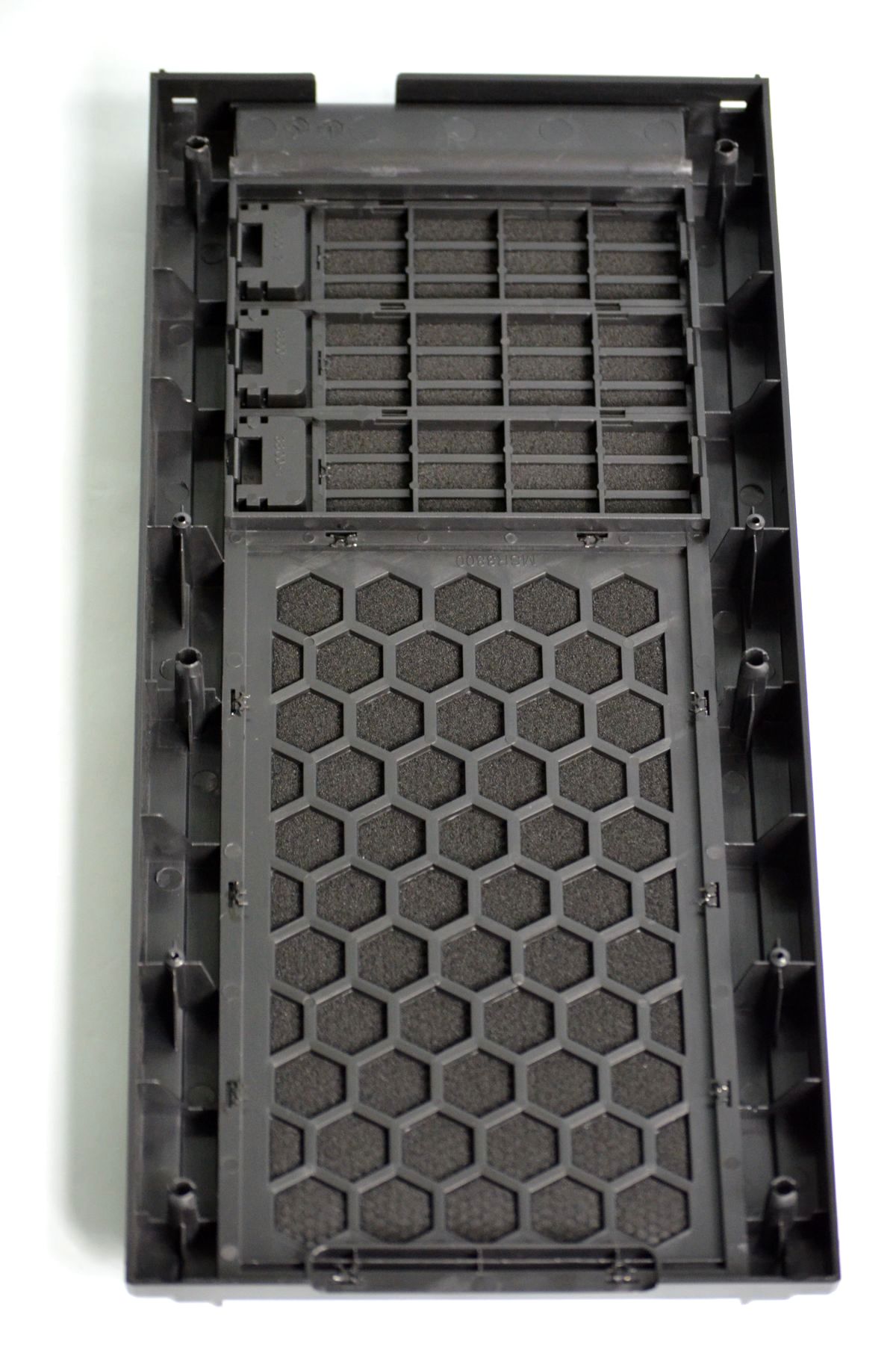 Înlăturarea măştii superioare dezvăluie un alt filtru împotriva prafului, dar şi prezenţa unui ventilator de 170mm. Dacă se doreşte, acesta poate fi înlocuit cu două ventilatoare de 140 sau 120mm.