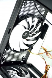 Părţile laterale sunt acoperite cu panouri detaşabile perforate. Pe partea stângă, producătorul a montat un panou care prezintă o suprafaţă perforată şi scoasă în relief unde utilizatorul poate monta fie patru ventilatoare de 120mm, fie un singur ventilator de 200mm. A fost ales acest design pentru a permite montarea unor coolere cât mai mari pe procesor; trebuie să ţineţi însă cont că dacă utilizaţi un cooler prea înalt, nu veţi putea monta decât două ventilatoare de 120mm pe lateral.