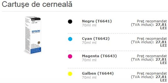 Important de reţinut este preţul sticluţelor cu cerneală, care pe lângă faptul că sunt accesibile, sunt şi de capacităţi foarte mari.