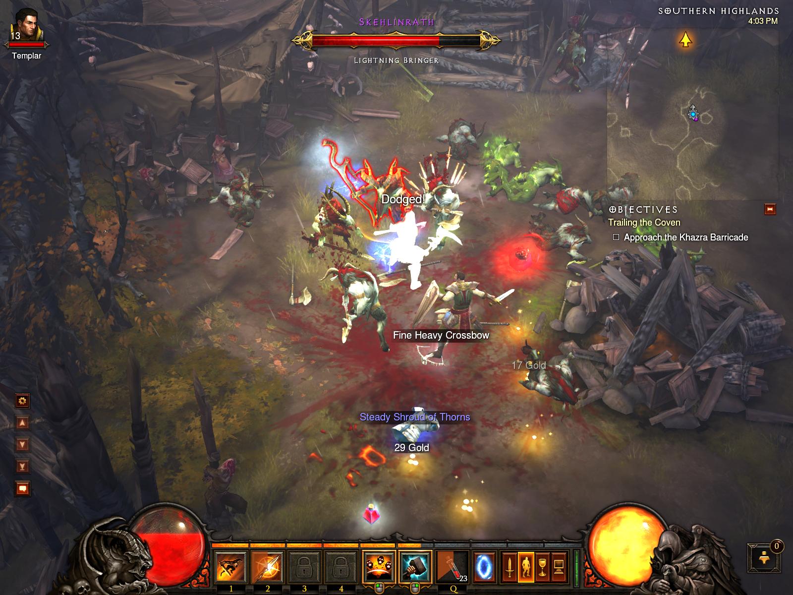 Pe de altă parte, Diablo III încă reţine acel ceva care a făcut celebră seria. Nu neapărat povestea (pe care personal n-am considerat-o extraordinară niciodată), ci felul în care gameplay-ul combină luptele la grămadă cu folosirea tuturor abilităţilor în cel mai libertin mod. Nu trebuie să-ţi păstrezi forţele pentru cine ştie ce boss special, ci doar să arunci cu fulgere, topoare, gheaţă, foc, să prăbuşeşti candelabre, bolovani şi buşteni peste grămezile de monştri.