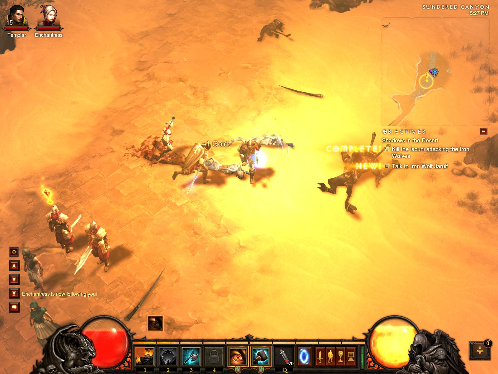 Un cutremur îngheţat scutură deşertul, lăsând în urmă doi crocodili cu burta în sus. Muştele supradimensionate nu-ţi dau pace, alte creaturi cu sau fără aripi sar pe tine fără nicio jenă, numai bun să sari în mijlocul lor pentru un Whirlwind devastator. Câteva globuri de viaţă îţi asigură supravieţuirea până la următoarea hoardă de monştri, până la următoarea peşteră sau subterană, până la Răul suprem, Diablo.