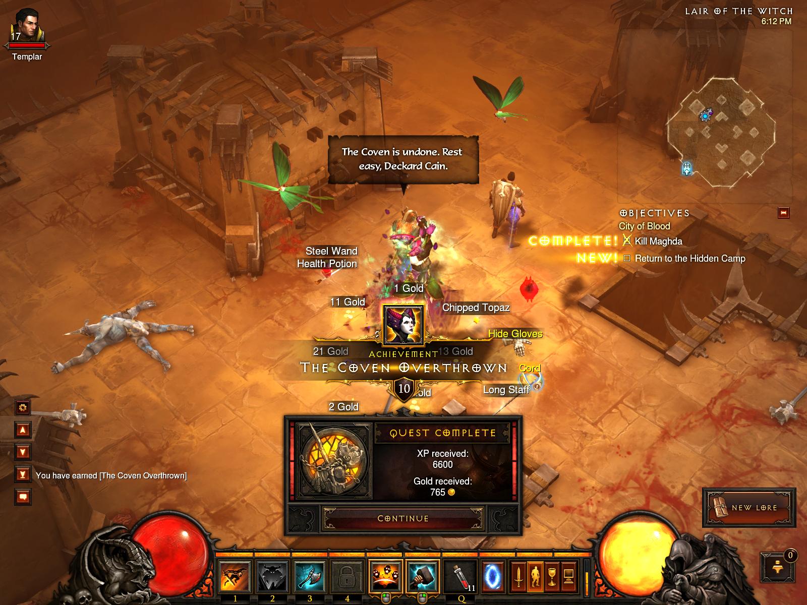 Loot-ul este una dintre criticile mele, cel puţin pe nivelul Normal. În afară de câteva obiecte galbene, pică invariabil doar banalităţi şi iteme magice (albastre). Nu zic că nu sunt bune, dar noţiunea de aleatoriu nu mi se pare corect să fie scriptată în funcţie de nivelul de dificultate, cel puţin nu la nivel de loot. Poate n-am chef sau timp să joc pe Nightmare pentru cine ştie ce sabie legendară sau pentru o piatră preţioasă perfectă sau un tom de Blacksmithing.