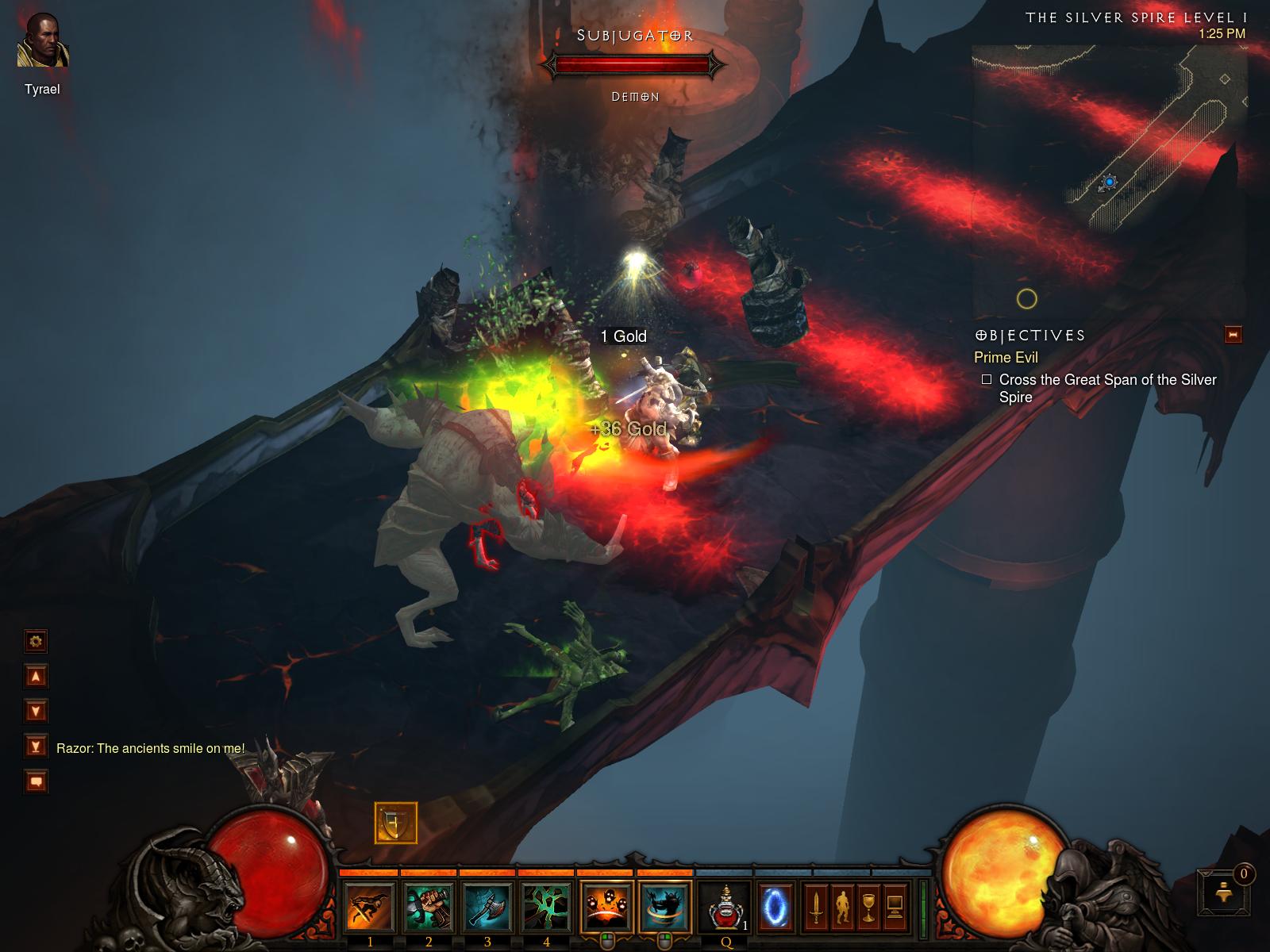 Despre problemele de servere cred că nu mai e cazul să discut, au fost înjurate în toate felurile în decursul săptămânii trecute de la lansare; oprirea lor continuă pe perioade destul de extinse şi, chiar dacă poţi trece pe un alt server (dintre America, Asia, Europa), nu-ţi poţi importa şi personajul. Congruenţa serverelor a fost realizată pentru a uni jucători de pe mai multe continente, dar „mărinimia” Blizzard are de fapt altă direcţie – nu poţi importa un erou şi nici obiectele, deci creezi altul nou, alt loot, alte licitaţii, mai mulţi bani pentru producător.
