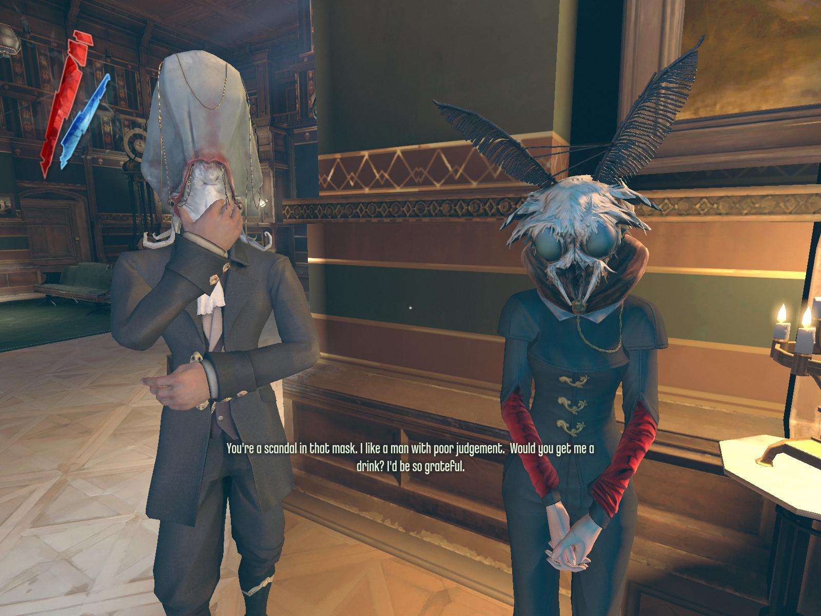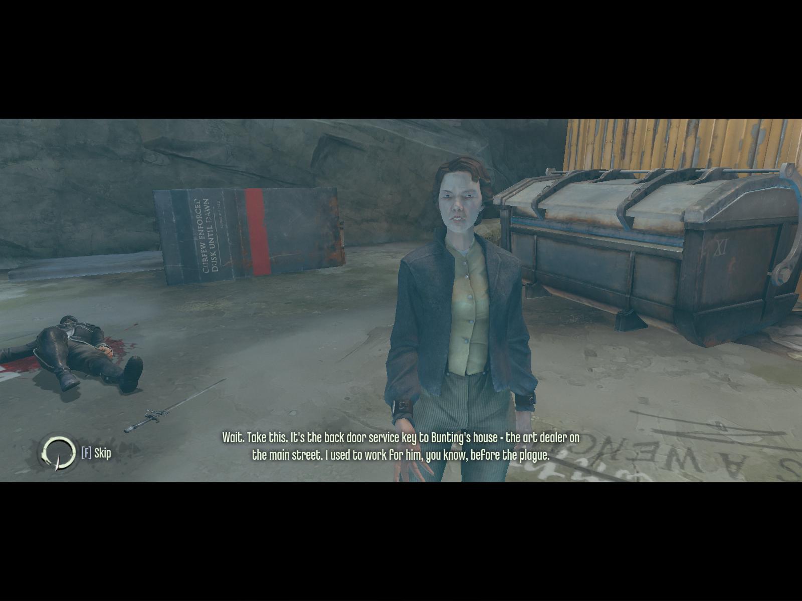 Eroul principal, Corvo Attano, începe cuminte – este body-guard-ul împărătesei din oraşul portuar Dunwall, revenit dintr-o misiune disperată de cerere de ajutor contra unei maladii misterioase ce afectează urbea. Împărăteasa este însă ucisă, iar Corvo n-are decât să pornească pe urmele asasinilor şi să facă dreptate moştenitorului tronului. Totul se desfăşoară în 9 capitole-misiuni, iar ţintele tale adună tot ce se putea mai bun sau mai rău din sentimentele manifestate de specia umană: ură şi iubire, tentaţie şi rezistenţă, goana după sănătate şi boala fatală, sărăcia lucie şi luxul extrem al avarilor aristocraţi. Şi dacă vrei să cunoşti NPC-urile din jurul tău, ai tot felul de cărţi şi jurnale răspândite, cronici şi manuale tehnice care să contureze oraşul depopulat de maladia şobolanilor şi în acelaşi timp disperat după petreceri şi distracţie ca în pragul unei iminente Apocalipse.