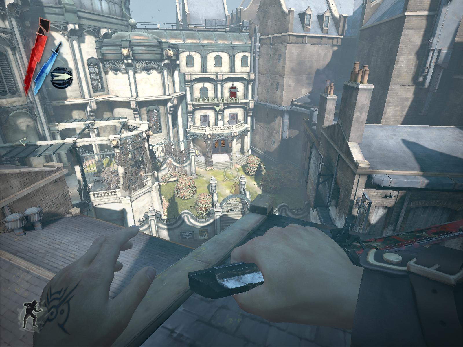 Prima tură de joc a fost o problematică de trecut pe toată lumea prin foc şi sabie. E mult mai uşor şi mai tentant să foloseşti pistolul şi sabia, chiar şi cu muniţie limitată şi cu un AI foarte reactiv şi care te poate afecta serios din doar două focuri. Pe de altă parte, această abordare e mai mult un fel de fast forward pentru că nu apuci să foloseşti cu adevărat nici libertatea pe verticală a oraşului, nici puterile lui Corvo oferite de o zeitate bizară – The Outsider. Dar dacă vrei să fii asasinul din umbră prin excelenţă, trebuie să ai multă răbdare, să salvezi des şi să iei în calcul toate opţiunile.
