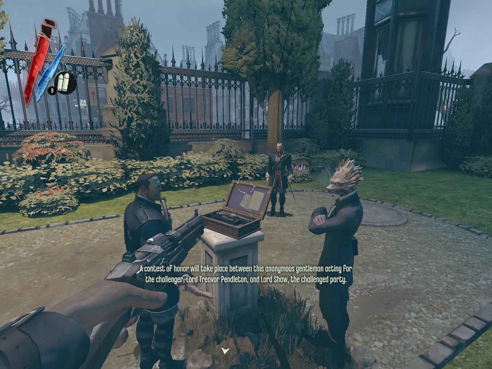Oraşul imaginat de cei de la Arkane reflectă nu doar ruina şi disperarea cauzate de o maladie fatală, ci şi opţiunile oferite de verticalizare. Poţi să te strecori aproape pe orice acoperiş, prin canale şi pe geamuri sau să traversezi pe ţevi, chiar dacă inevitabil mai dai şi peste zone inaccesibile sau bariere invizibile. Grafica pendulează între ruinele cartierelor sărace, unde rişti mereu să fii atacat de hoarde de şobolani sau de Weepers, şi vilele luxoase ale aristocraţiei, unde bogăţia şi luminile alungă spaima de moarte. Canalele îţi sunt bune prietene când vine vorba să te strecori, apoi ai de-a face şi cu o zonă inundată, ca să termini prin fortăreţele personajelor care devin obiectivele misiunilor lui Corvo.