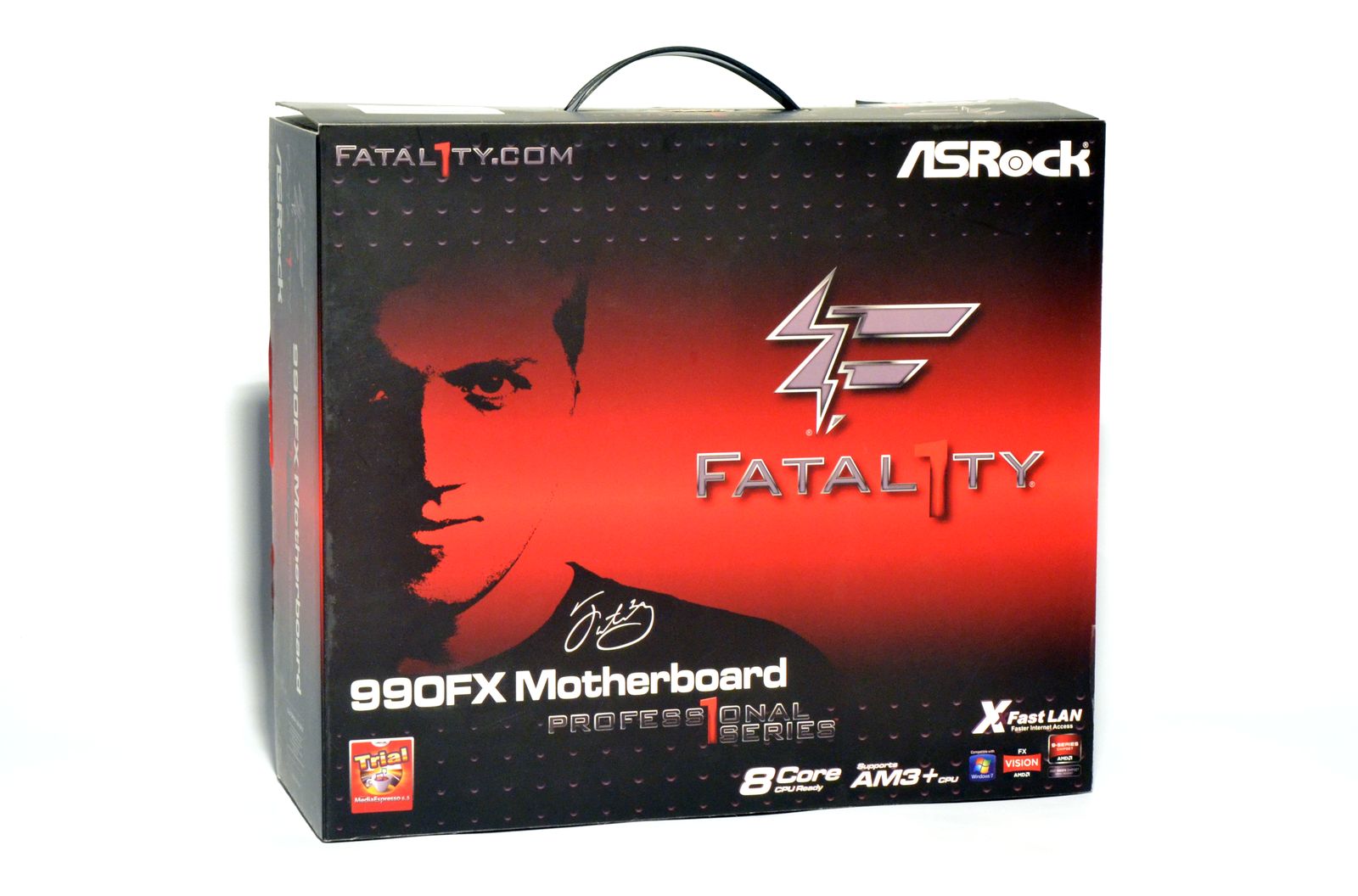 Fatal1ty este la ora actuală un nume foarte bine cunoscut printre pasionaţii de jocuri din lumea întreagă. Johnathan Wendel a învăţat să îmbine utilul cu plăcutul şi a ajuns să producă bani frumoşi de pe urma titlurilor jucate. Tot el este folosit şi ca imagine pentru brand-ul Fatal1ty, utilizat în momentul de faţă de ASRock pentru unele dintre plăcile sale de bază High End. Aşa se face că modelul de top oferit de ASRock pentru socket-ul AM3+ poartă denumirea Fatal1ty 990FX Professional şi se foloseşte de imaginea celebrului gamer.