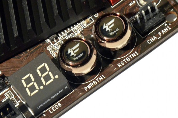 De asemenea, pasionaţii de overclocking vor fi fericiţi sa găsească în partea de jos a PCB-ului butoanele Power şi Reset, dar şi un Debug LED.