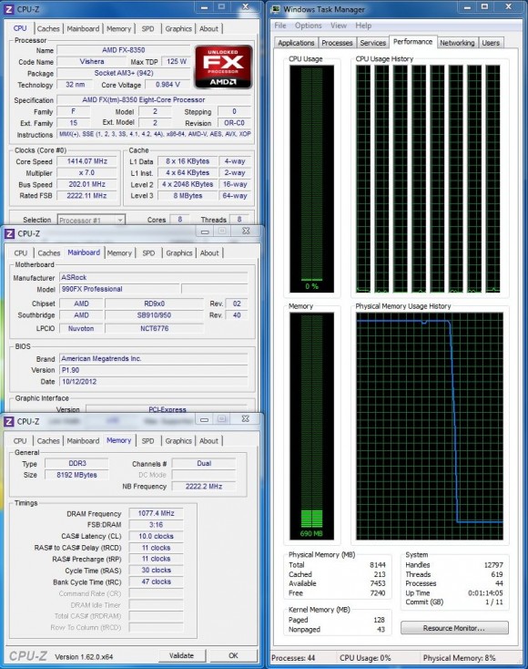 Pe durata testelor, tehnologiile prentru reducerea consumului de energie şi AMD Turbo Core au fost active, iar potenţiometrul ventilatorului pentru răcirea procesorului a fost setat pe poziţia Low.