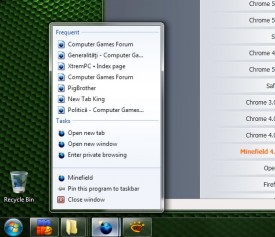 Firefox 4 Beta se integrează cu desktop-ul modern oferit de sisteme de operare Windows Vista şi 7, oferind suport pentru Aero, transparenţe şi thumbnail-uri multiple în taskbar, integrând şi facilitatea Jumplist din Windows 7, care oferă acces rapid la cele mai des accesate site-uri, deschiderea unui tab sau ferestre noi şi trecerea în modul privat de navigare.