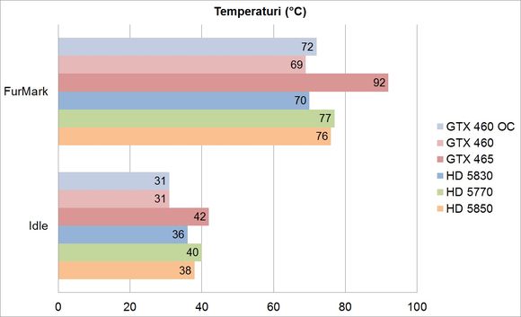 Din păcate, turaţia ventilatorului cu care este dotat GTX 460 nu a putut fi monitorizată. Cu toate acestea, pot susţine că modelul este suficient de silenţios pentru a nu deranja niciun pasionat de jocuri.
