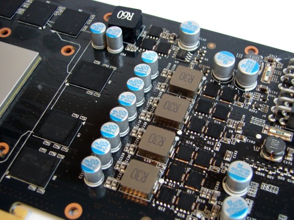 PCB-ul seamănă şi el destul de mult cu cel utilizat pentru GTX 460, dar se pot observa unele diferenţe, în special la nivelul VRM-ului.