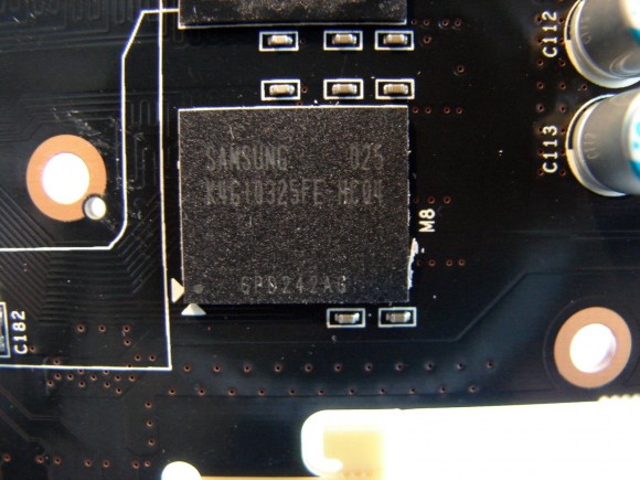 Dacă tot am vorbit despre chip-urile de RAM, acestea sunt Samsung K4G10325FE-HC04.