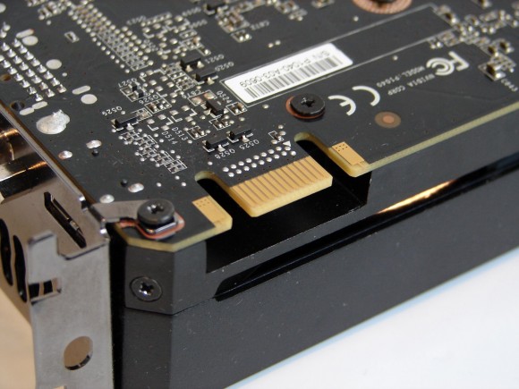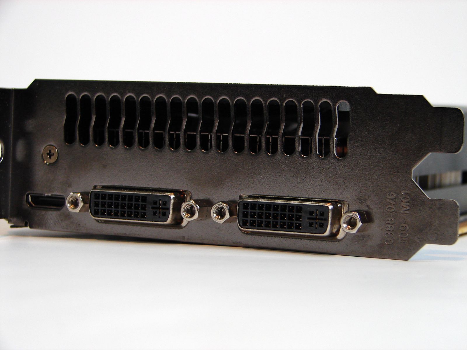 Bracket-ul nu aduce nimic nou, conectorii video disponibil fiind două porturi DVI şi un port mini HDMI. Pentru alimentarea cu energie, placa utilizează doi conectori cu şase pini.