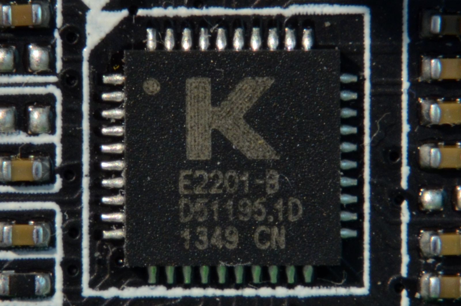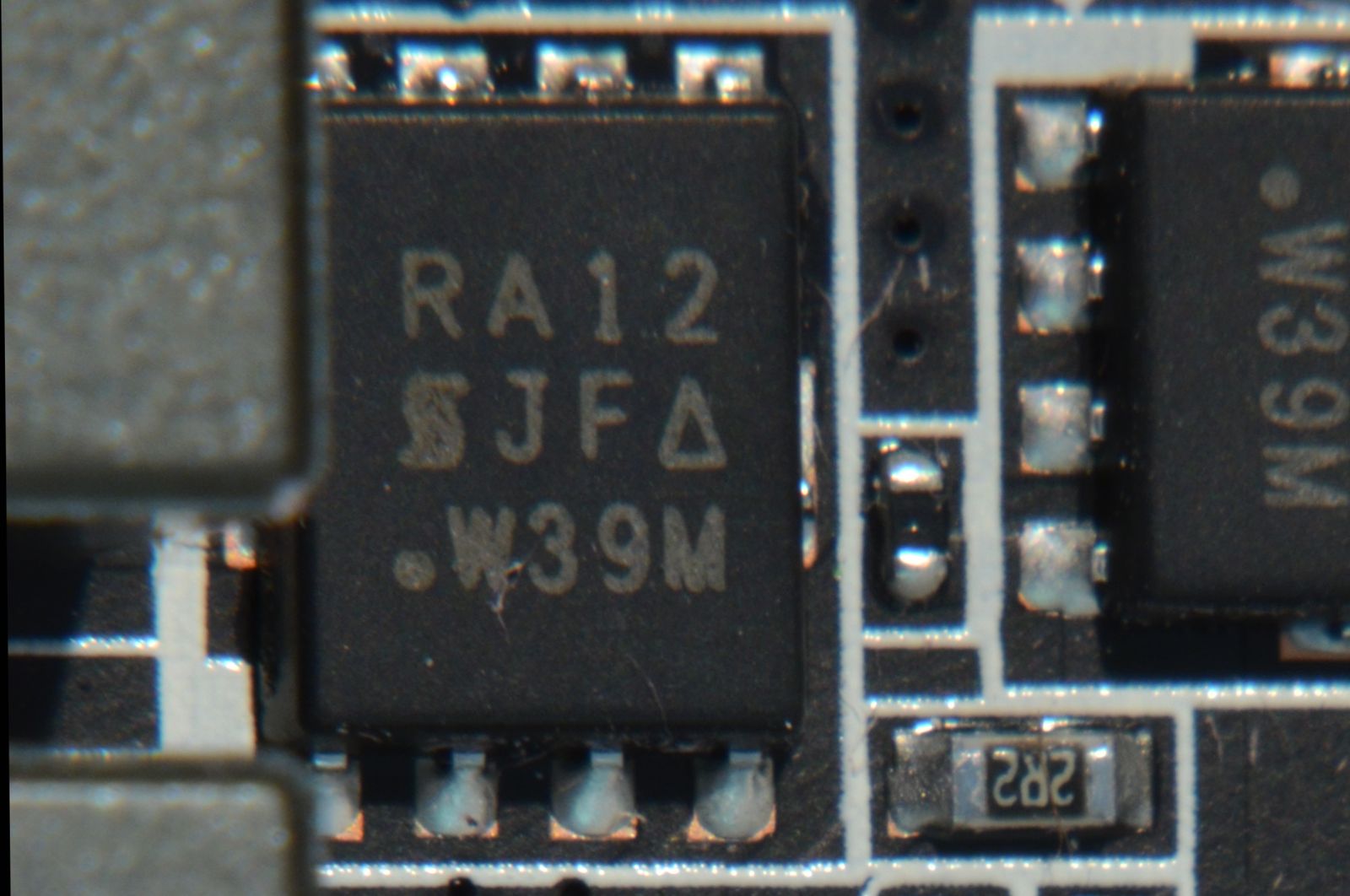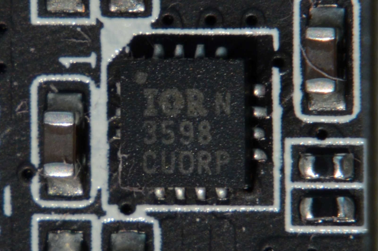 Acesta foloseşte 3 tranzistori MOSFET, 1 bobină cu miez de ferită şi condensatori solizi certificaţi pentru 10 000 ore de funcţionare. Controller-ul este un RT8120D produs de Richtek Technology.
