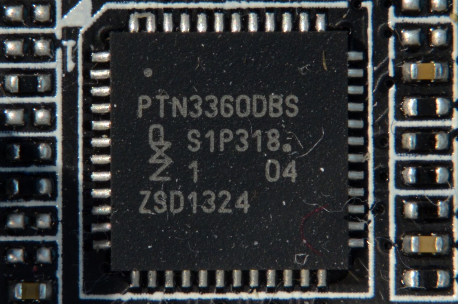 Pentru implementarea conectorilor HDMI şi DVI, au fost folosite 2 controllere – ASM1442K produs de Asmedia Technology şi PTN3360DBS produs de NXP Semiconductors.