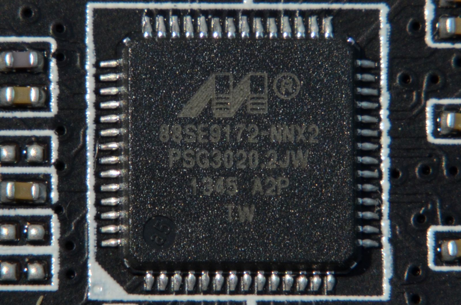 Iar o parte dintre porturile SATA 6.0Gbps au fost obţinute cu 2 controllere Marvell 88SE9172, în timp ce pentru numărul mare de conectori USB 3.0 avem un controller Renesas D720210.